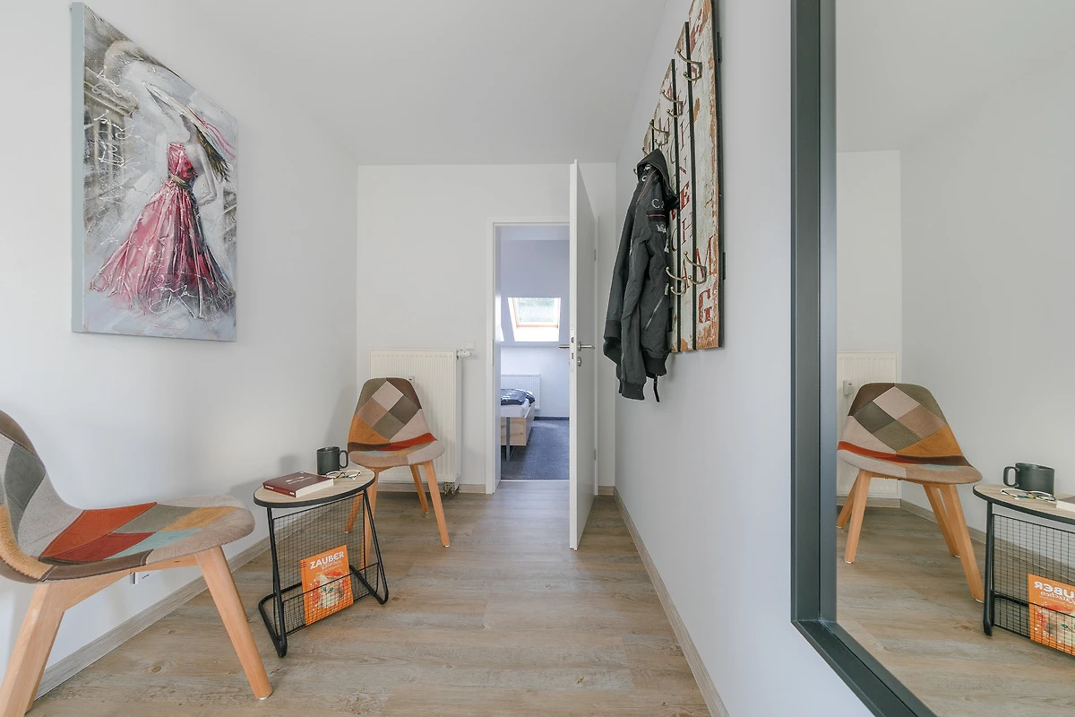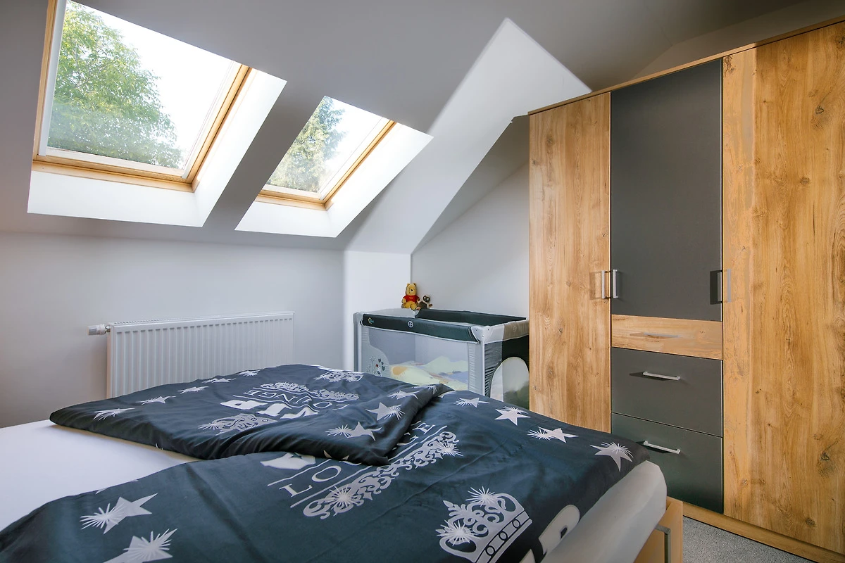 Wenn Sie nur zu zweit anreisen, wird Ihnen nur das Erdgeschoss mit 1 Schlafzimmer und 1 Bad zur Verfügung gestellt. Sie können aber auch ein 2. Schlafzimmer im OG für einem Betrag in Höhe von 5,00 € pro Nacht hinzubuchen.