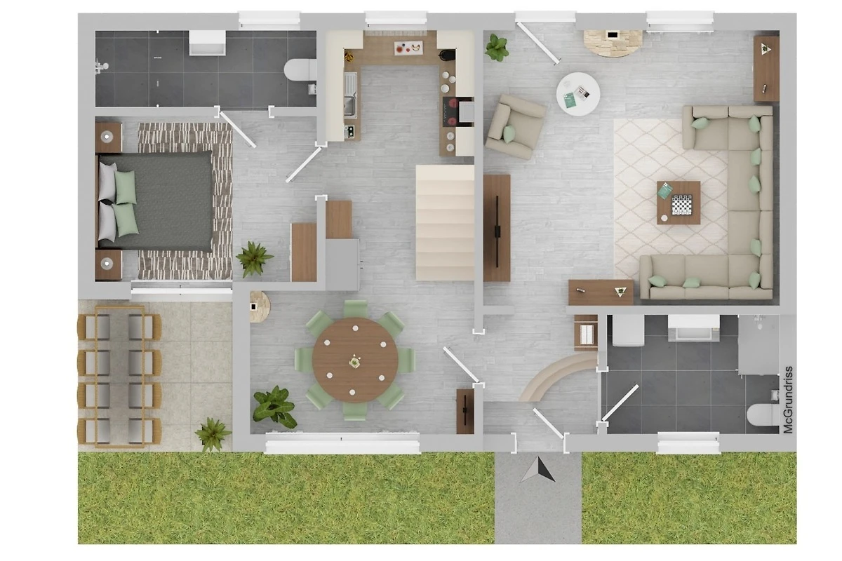 der hauseigene Garten ist mit einer überdachten Terrasse, Gartenmöbeln und einem Grill ausgestattet