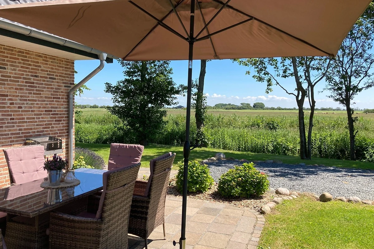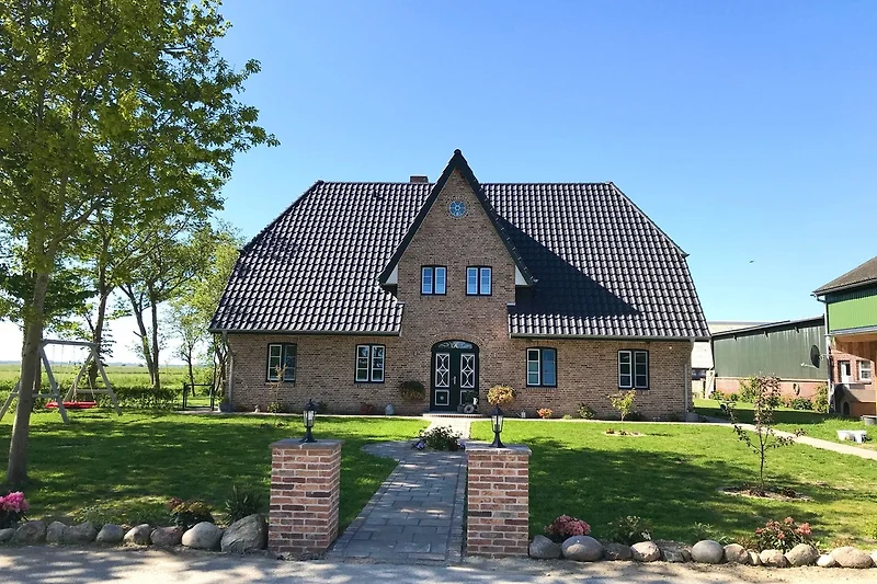Unser Hof liegt nur wenige Meter vom Deich entfernt. Zur Ortsmitte sind es ca 2,5 km.