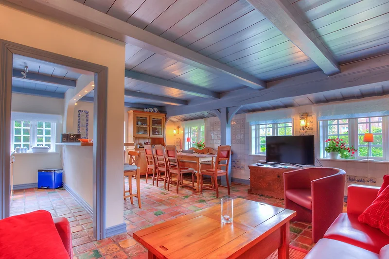 Dieses zauberhafte Fünfraumdomizil mit einer südlichen und westlichen Ausrichtung liegt im Erdgeschoss und Dachgeschoss des Friesenhauses Sara. Im Erdgeschoss empfängt Sie das grosszügige Wohnzimmer und die durch einen gemütlichen Tresen abgegrenzte moderne Küche. Sowohl die Essgruppe, als auch die behaglichen Polstermöbel laden zum gemeinsamen Entspannen und Geniessen ein.