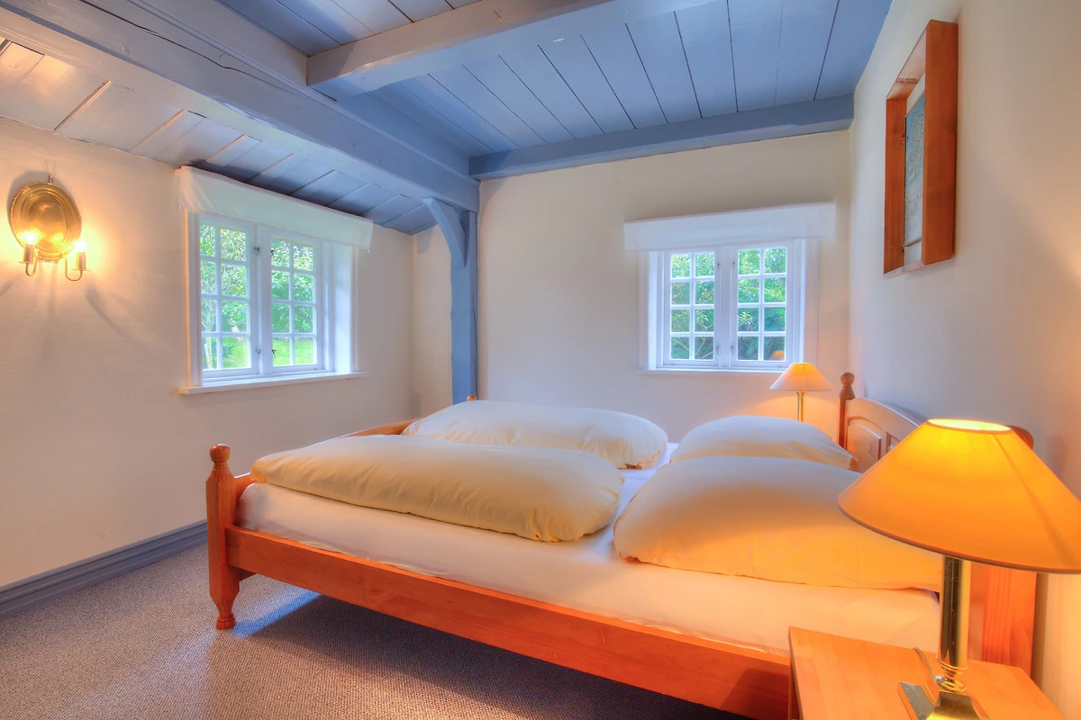 Aus dem Wohnzimmer heraus gelangen sie durch die „Brauttür“ direkt zu Ihrem eigenen nach Süden gerichteten Terrassenbereich mit Strandkorb, Sonnenschirm und Gartenmöbeln – beste Möglichkeiten, um besondere Momente mit der Familie zu verbringen. Die beiden anheimelnden Schlafräume mit Doppelbetten im Erdgeschoss versprechen erholsame Nächte und bieten genug Schrankraum.