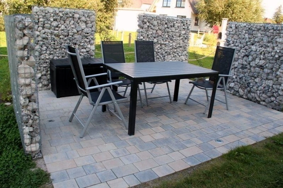 Zur Ferienwohnung gehört eine eigene beleuchtete Terrasse mit Tisch und Stühlen, Grillmöglichkeit sowie ein PKW- Stellplatz.