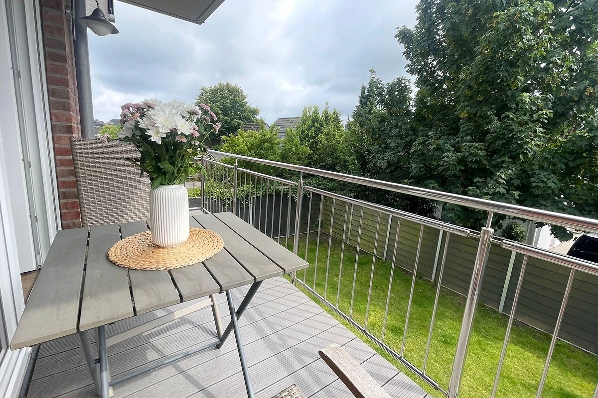Der Aussenbereich der Wohnung, insbesondere der Balkon, bietet den perfekten Ort für entspannte Stunden im Freien. Diese Unterkunft vereint Komfort und eine ideale Lage für einen erholsamen Urlaub in Cuxhaven. Die grosszügige Gestaltung des Aussenbereichs fügt sich harmonisch in das Gesamtbild der Ferienwohnung ein und sorgt dafür, dass der Aufenthalt unvergesslich wird.
