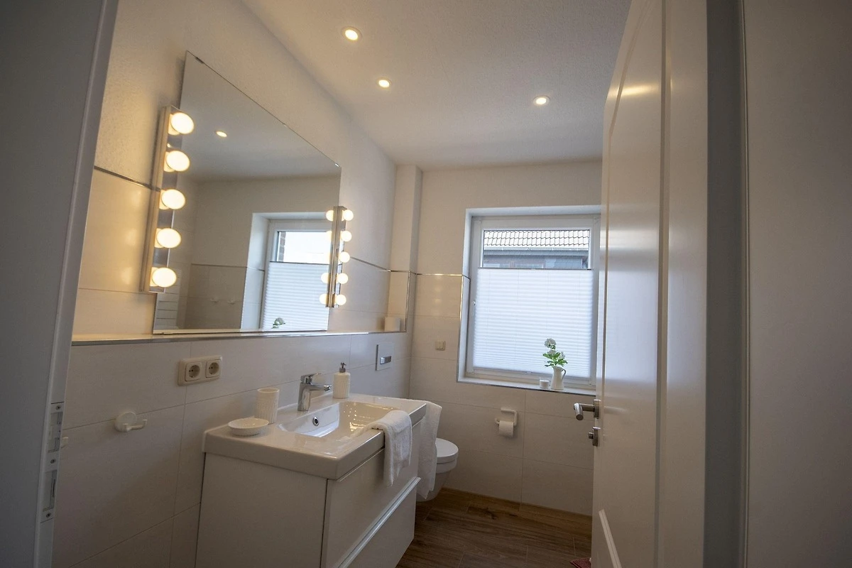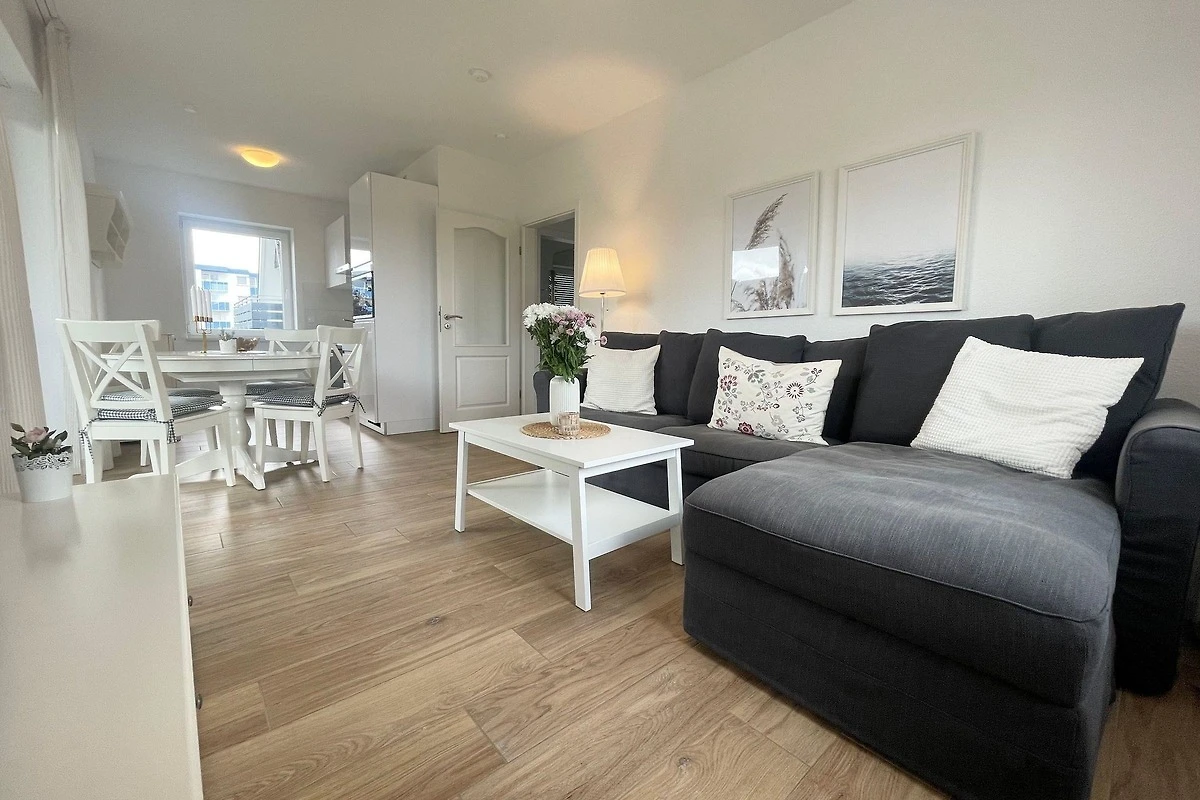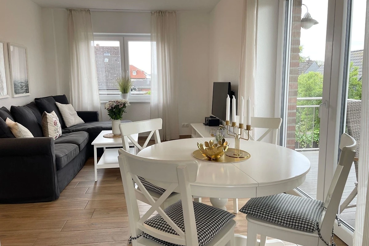 Die strandnahe Ferienwohnung im nordischen Stil befindet sich in der 1. Etage und bietet Platz für bis zu 6 Personen. Sie verfügt über zwei separate Schlafzimmer, jeweils ausgestattet mit einem grossen Doppelbett und Flachbildschirm. Der Wohnbereich beherbergt eine Schlafcouch für zusätzliche Gäste. Das luxuriöse Badezimmer ist mit einer grosszügigen, bodengleichen Dusche ausgestattet. Die offene Küchenzeile lässt keine Wünsche offen und beinhaltet moderne Geräte wie Geschirrspüler, Induktionsherd, Mikrowelle, Backofen, Kaffeemaschine und Wasserkocher. Die Wohnung besticht durch helle, freundliche Farben und eine exklusive Einrichtung. Zudem gehört ein eigener Balkon mit Balkonmöbeln zur Wohnung. Gemeinschaftliche Bereiche sind in dieser Beschreibung nicht aufgeführt. Diese Unterkunft stellt eine ideale Kombination aus Komfort und Lage für einen unvergesslichen Cuxhaven-Urlaub dar.