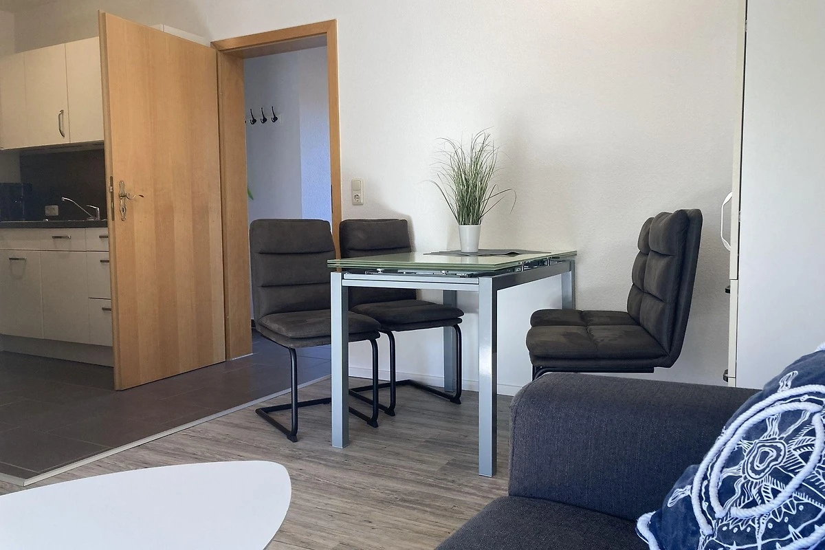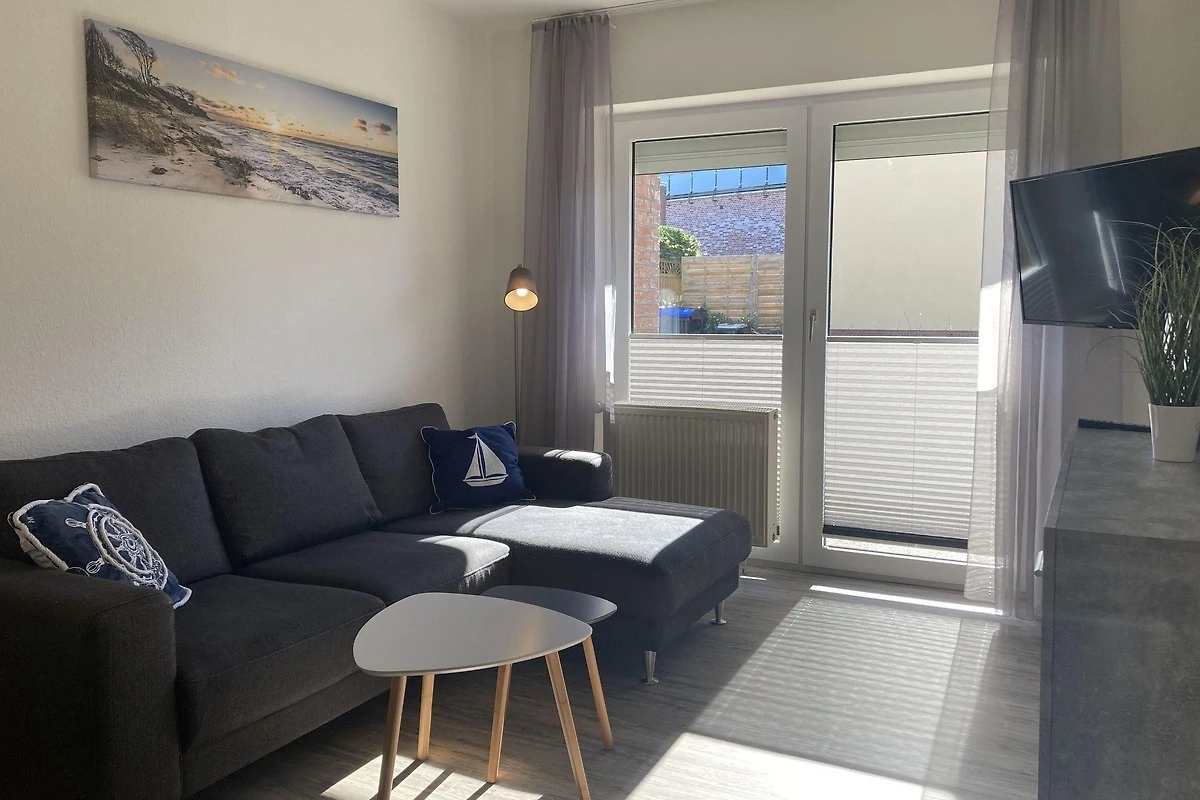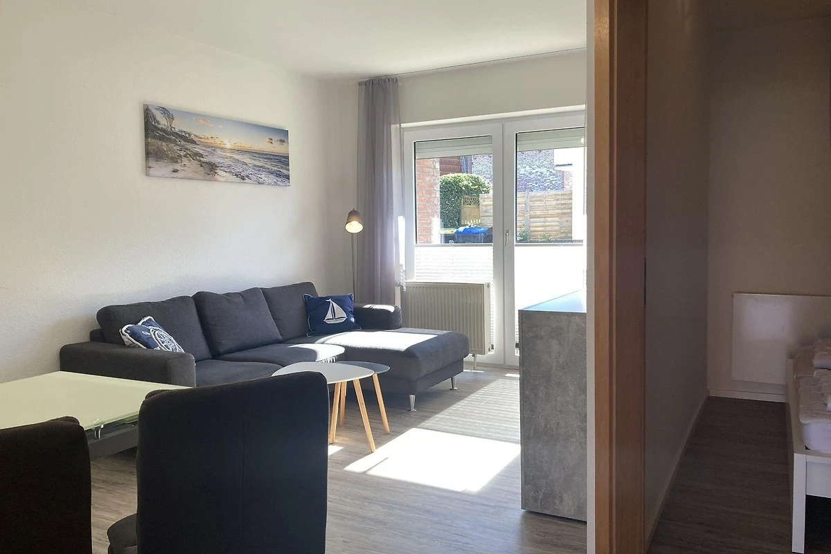 Familienfreundliche Ferienwohnung im Erdgeschoss mit Terrasse und zwei Schlafzimmern. Pkw-Stellplatz direkt am Haus.