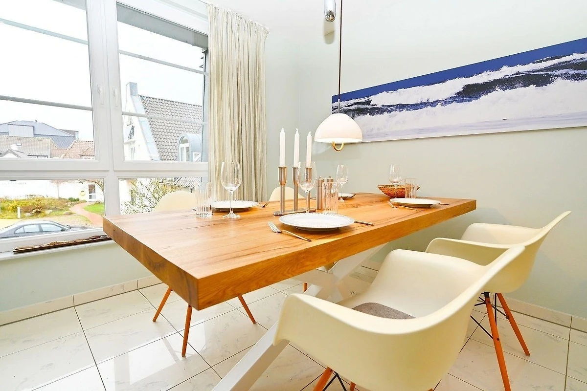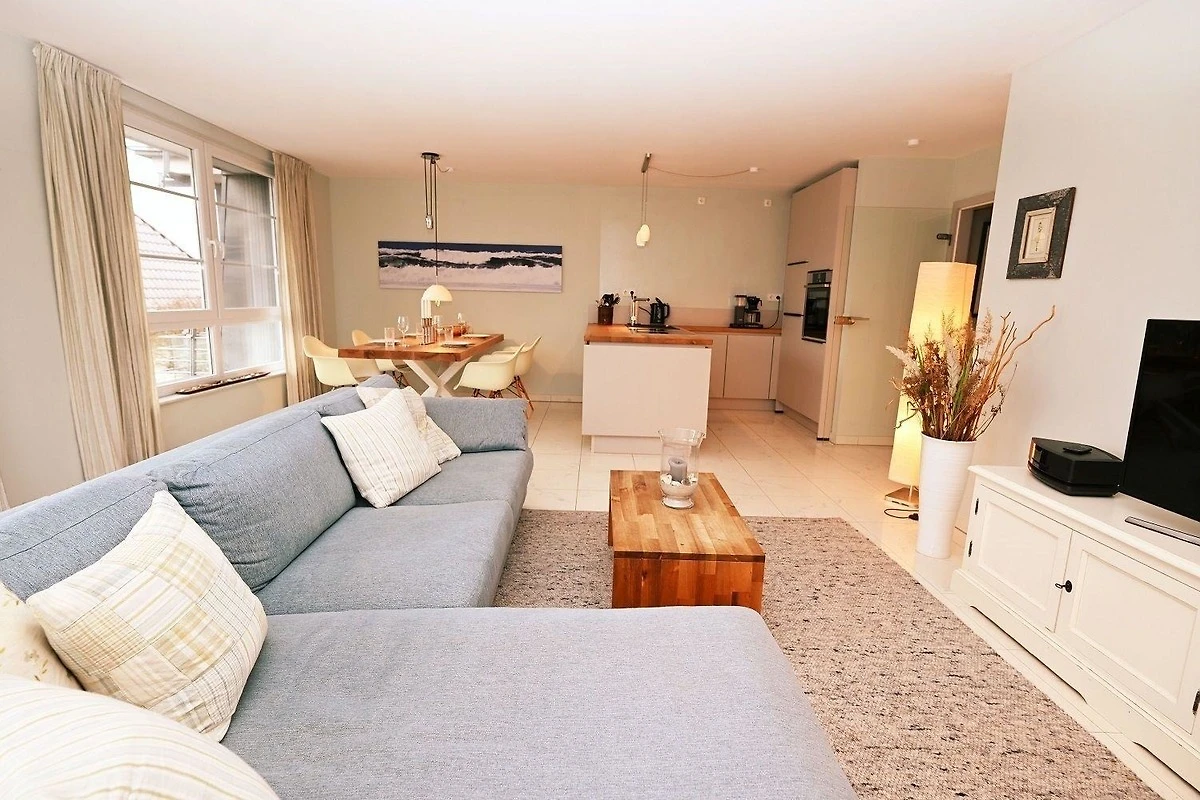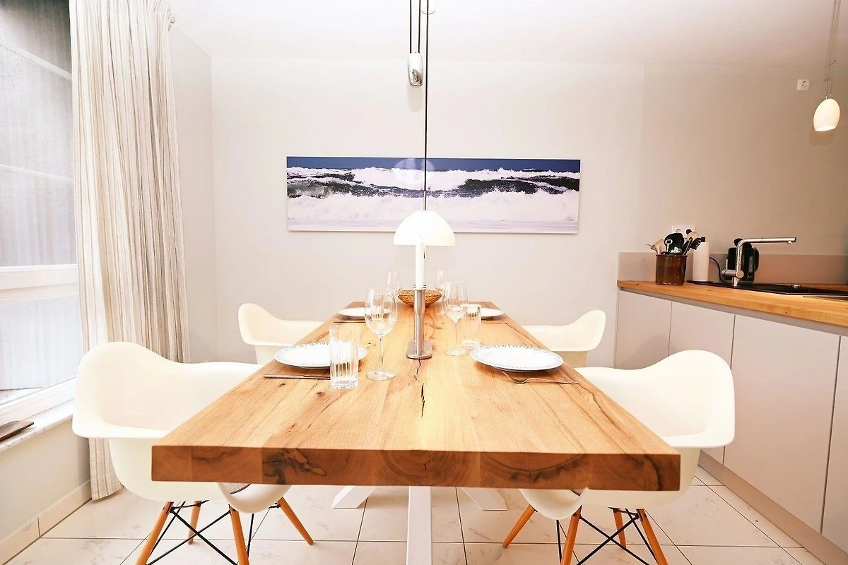 Das Appartement Strandpiraten im Haus Skandinavienblick bietet eine moderne und komfortable Ausstattung. Der grosszügige Wohnraum lädt mit seiner stilvollen Einrichtung zur Entspannung ein und ist ideal für gesellige Stunden, auch bei weniger schönem Wetter. Eine offene Küchenzeile ermöglicht gemeinsames Kochen und gesellige Gespräche. Der grosse Eckbalkon in Süd-West-Lage erweitert den Wohnraum in der warmen Jahreszeit und bietet einen weiteren Rückzugsort. Zur Ausstattung gehören zwei Fernseher, ein DVD-Player sowie eine Musikanlage mit CD- und iPod-Anschluss. Für zusätzlichen Komfort stehen ein Gemeinschafts-Waschsalon mit Waschmaschine, Trockner und Bügelmöglichkeit zur Verfügung. WLAN und ein Wäschepaket sind ebenfalls im Preis enthalten. Ein persönlicher Begrüssungsservice sowie ein Parkplatz vor dem Haus runden das Angebot ab. Ein eigener Strandkorb direkt vor dem Appartement ist saisonal verfügbar.