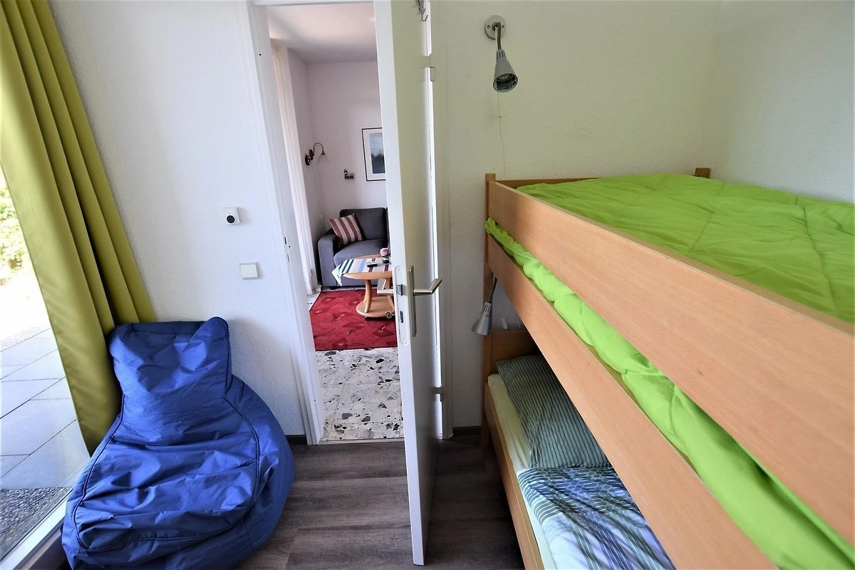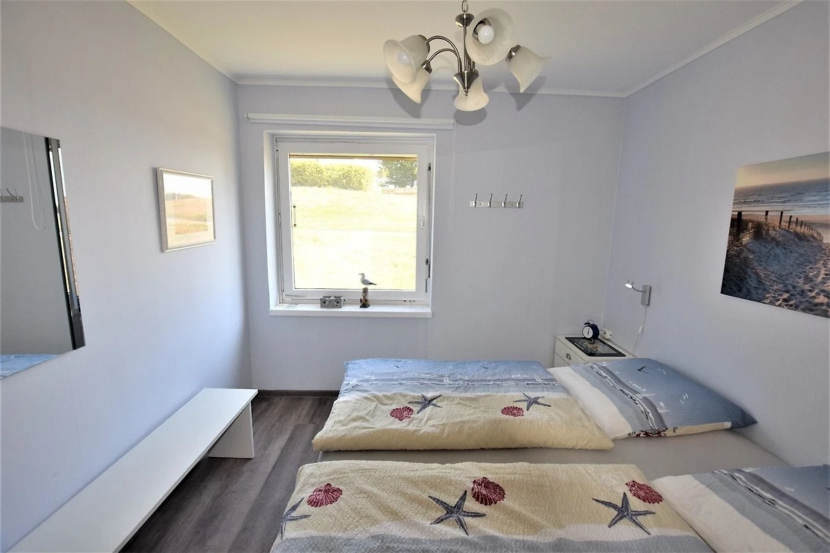 Der gemütlich eingerichtete Nichtraucher-Bungalow "Sonnenkliff" bietet Platz für bis zu 4 Personen, davon maximal 2 Erwachsene. Der Bungalow erstreckt sich über ca. 52 qm und umfasst einen einladenden Wohnraum mit Sitz- und Essecke, ein Elternschlafzimmer mit Aussenrolladen sowie ein Kinderschlafzimmer mit 2 Einzelbetten. Die Ausstattung beinhaltet WLAN, Kabel-TV, Radio sowie eine komplett ausgestattete Einbauküche mit Herd, Backofen, Geschirrspüler und Kühlschrank. Ein modernes WC/Wannenbad mit Duschvorrichtung sorgt für zusätzlichen Komfort. Zur weiteren Ausstattung zählt die elektrische Fussbodenheizung. Ein Wäschepaket kann gegen Gebühr hinzugebucht werden. Ein Parkplatz steht zur Verfügung. Der Bungalow ist ganzjährig vermietbar und befindet sich in der Nähe der Steilküste, nur unweit vom Strand entfernt.