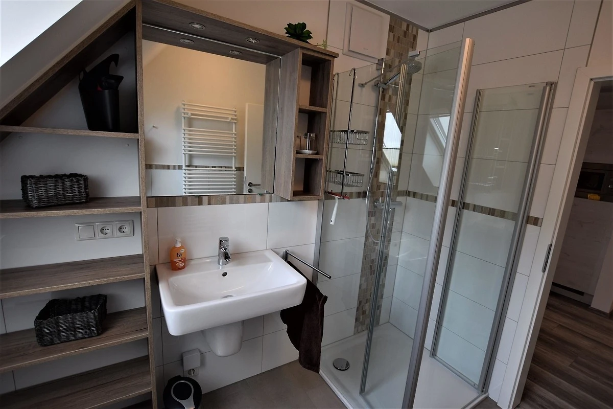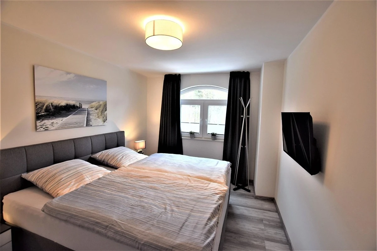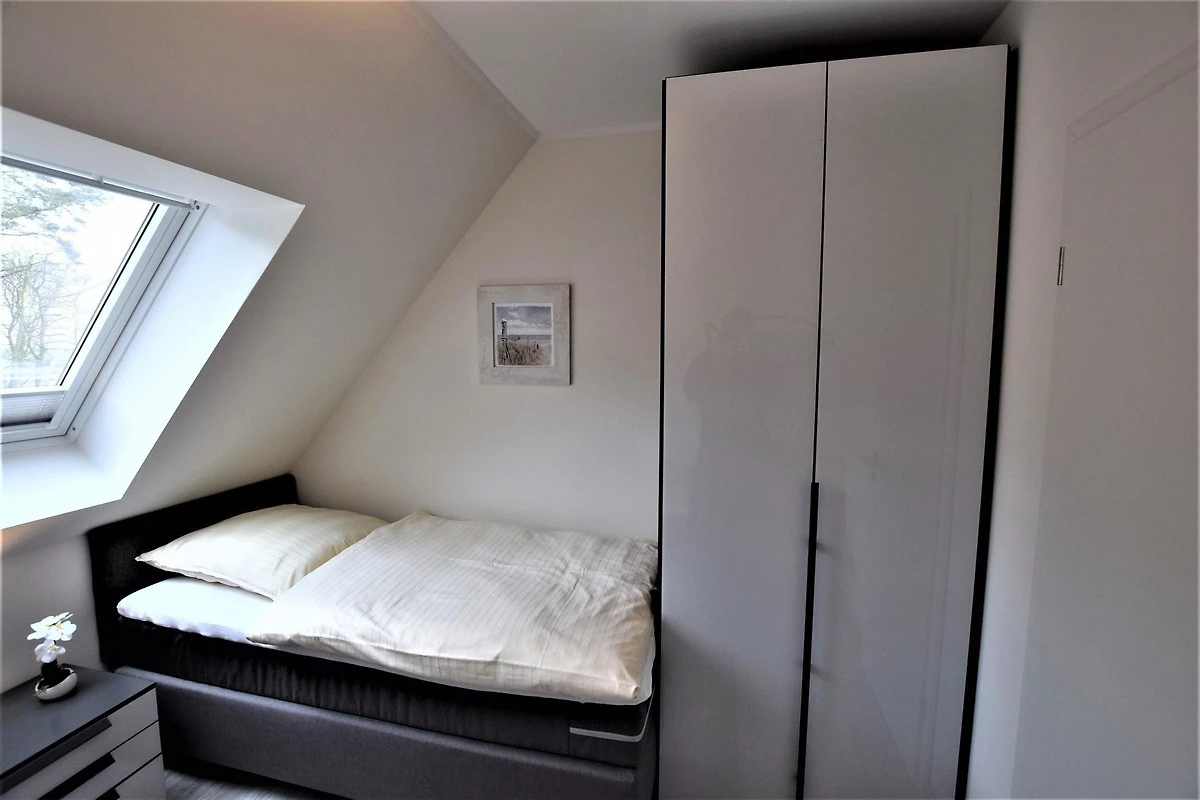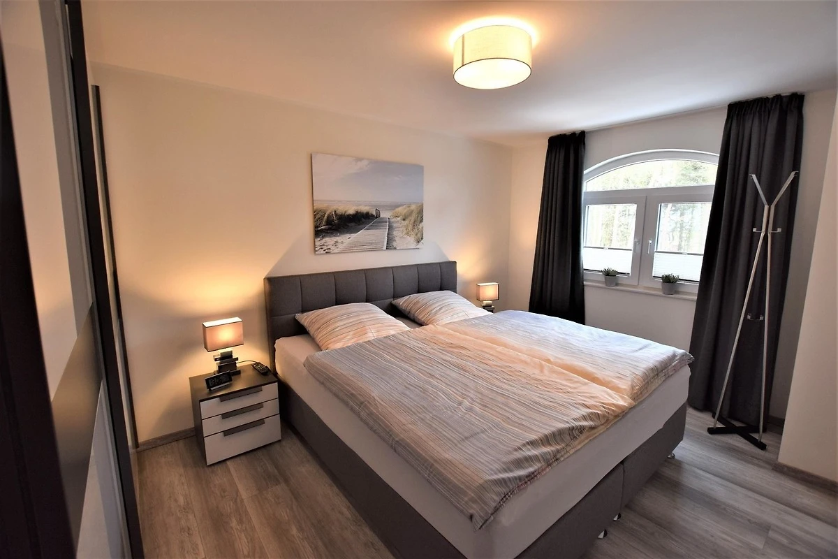 Die Ferienwohnung in Hohwacht an der Ostsee bietet auf 65 qm Platz für bis zu 4 Personen, mit der Option auf 6 Personen auf Anfrage. Sie befindet sich im zweiten Stock und wurde 2017 erbaut. Das grosszügige Wohn-Esszimmer mit 36 qm ist mit einem Fernseher und einer HiFi-Anlage ausgestattet. Es gibt zwei Schlafzimmer: eines mit zwei Einzelbetten (90x200) und ein weiteres mit einem Doppelbett (200x220) sowie einem Fernseher. Eine ausziehbare Couch (160x200) steht ebenfalls zur Verfügung. Die hochwertige, komplett eingerichtete Küche ist mit modernen Geräten wie einem Induktionsherd, Backofen und Geschirrspüler ausgestattet. Das Badezimmer bietet eine Dusche, WC und Fussbodenheizung. Zur Ausstattung gehören ebenfalls WLAN und eine Waschmaschine mit Trockner. Hunde sind herzlich willkommen, die Nichtraucherwohnung verfügt über einen eigenen PKW-Stellplatz.