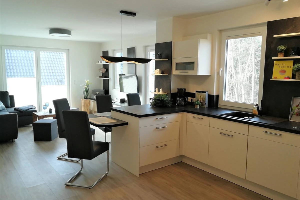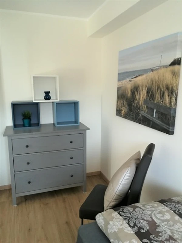 Die Ferienwohnung an der Ostsee in Hohwacht befindet sich im 2. Stock und bietet eine moderne, liebevolle und komfortable Einrichtung auf 65 qm für bis zu 4 Personen (6 Personen auf Anfrage). Das Wohn-Esszimmer mit 36 qm ist mit einem Fernseher und einer Hi-Fi-Anlage ausgestattet. Die beiden Schlafzimmer verfügen über Boxspringbetten und Verdunkelungsmöglichkeiten. In der hochwertigen Küche mit Backofen, Cerankochfeld, Mikrowelle und Geschirrspülmaschine steht ausreichend Stauraum zur Verfügung. Das geräumige Badezimmer ist mit Dusche, WC und Fussbodenheizung ausgestattet. WLAN und eine Waschmaschine mit Trockner sind vorhanden. Die Wohnung ist eine Nichtraucherunterkunft, Hunde sind erlaubt. Der eigene PKW-Stellplatz befindet sich direkt am Haus. Bettwäsche und Handtücher können gegen Gebühr bereitgestellt werden.