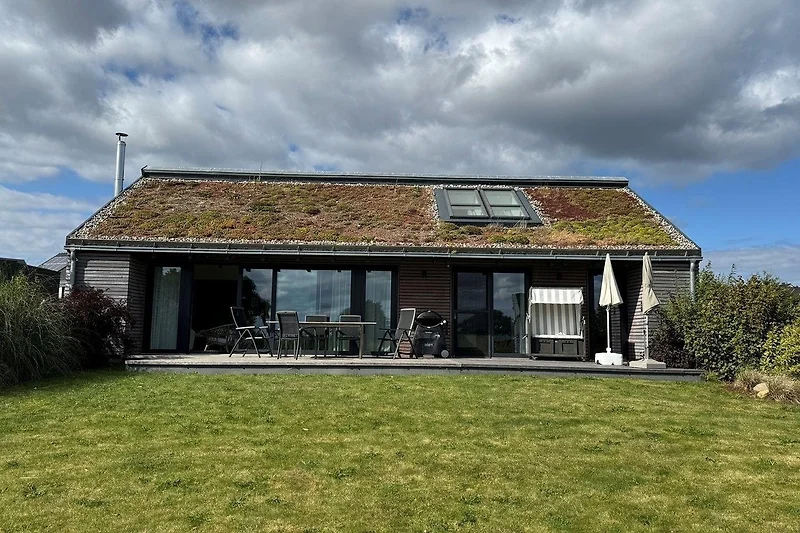 Im Ferienhaus Seeschwalbe erwartet die Besucher ein attraktiver Aussenbereich, der sowohl Entspannung als auch Freizeitmöglichkeiten bietet. Der grosszügige Garten mit Terrasse und Liegewiese lädt zum Grillen, Relaxen und Verweilen im Freien ein. Hier können die Gäste die ruhige Atmosphäre geniessen und den Blick auf das angrenzende Naturschutzgebiet werfen. Zudem ist der Bereich ideal für gesellige Zusammenkünfte oder entspannte Stunden im Freien. Obwohl das Ferienhaus erst 2019 erbaut wurde und in einem neu gestalteten Wohn-/Feriengebiet liegt, ist der Aussenbereich gemeinschaftlich nutzbar, was eine freundliche Nachbarschaft fördert und das Urlaubsgefühl verstärkt. Die Lage ist zudem hervorragend, nur ca. 1000 Meter vom Sandstrand entfernt, sodass der perfekte Tagesausflug zum Meer jederzeit möglich ist.