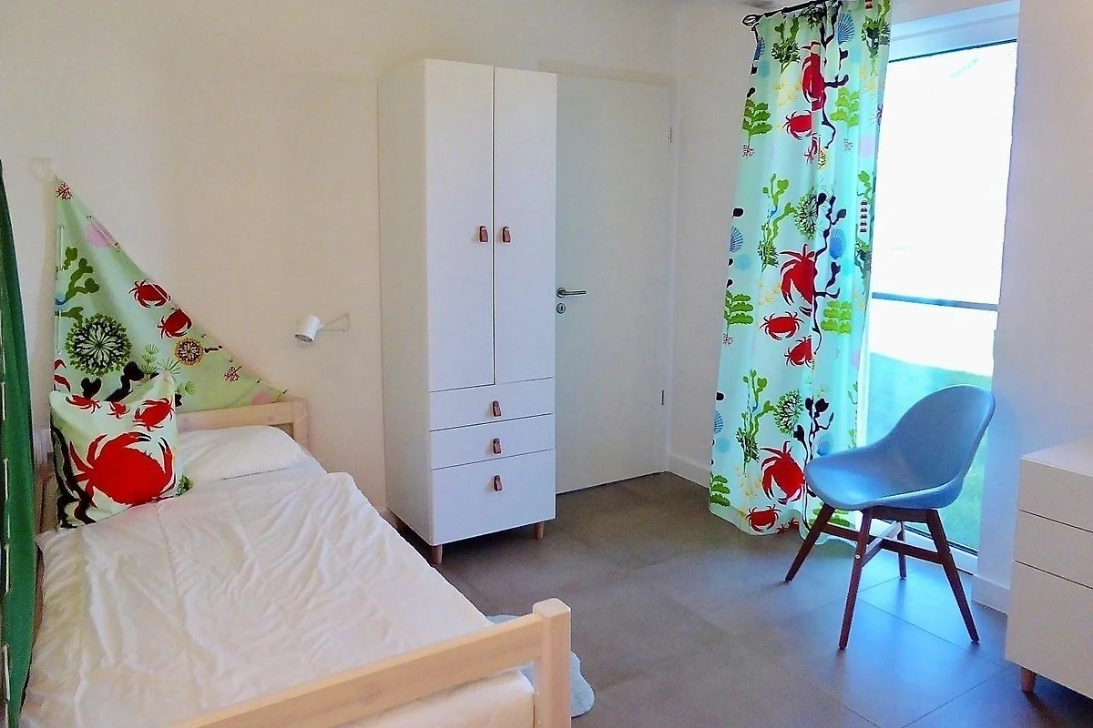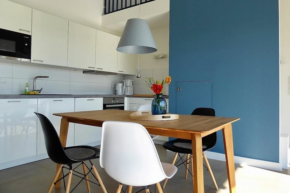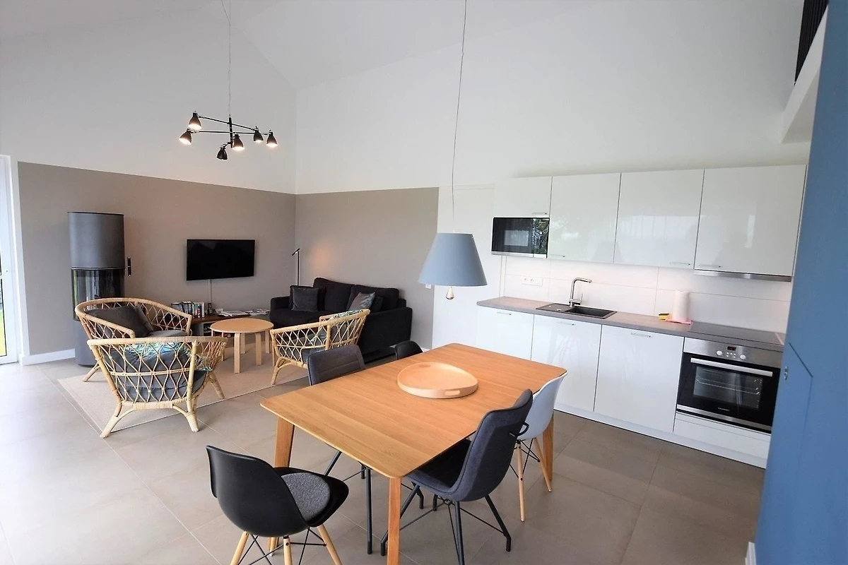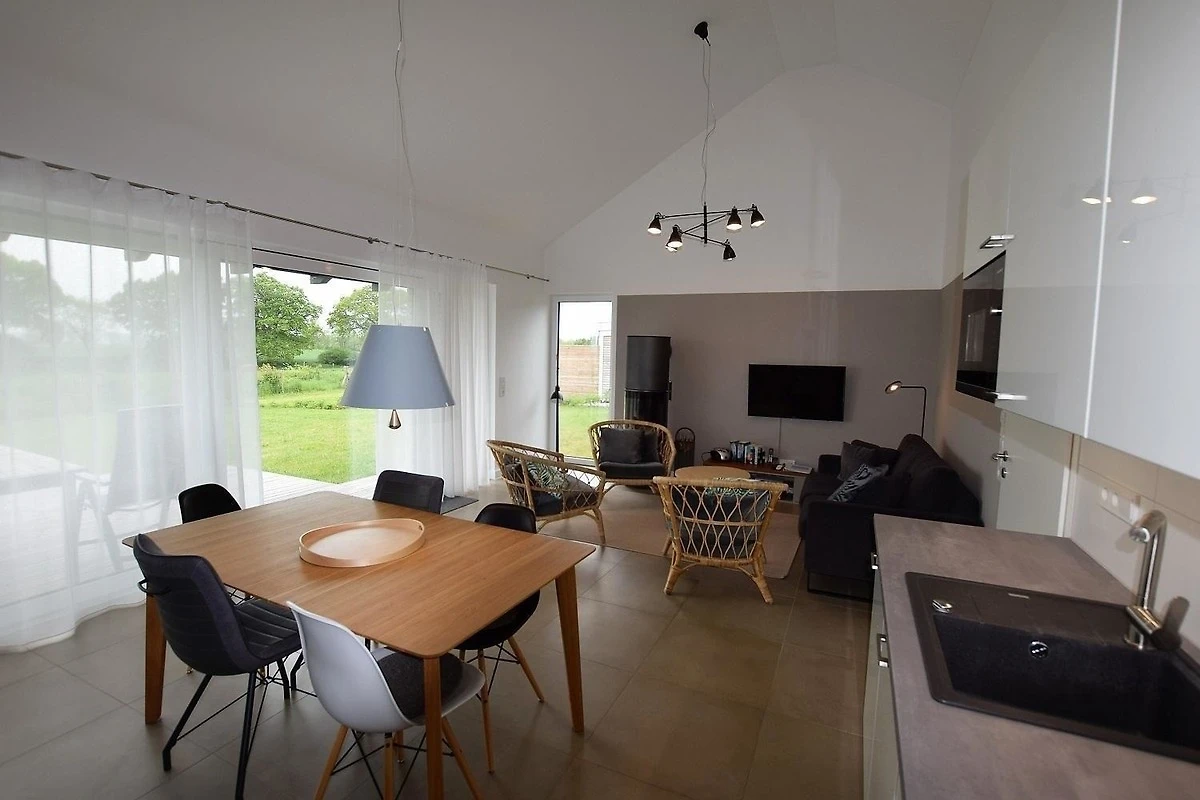 Das Ferienhaus Seeschwalbe, erbaut im Jahr 2019, bietet auf 100 qm Platz für bis zu 5 Personen. Der grosszügige Wohnbereich ist ausgestattet mit einem gemütlichen Couchbereich, TV und Kaminofen. Die offene Küche verfügt über eine Spülmaschine, einen Backofen mit Induktionsherd und eine Mikrowelle, ergänzt durch einen angrenzenden Essbereich. WLAN ist ebenfalls vorhanden. Es gibt zwei Schlafzimmer: eines mit einem Doppelbett (180x200) und eines mit einem Etagenbett (90x190) sowie einem Einzelbett (90x200). Für Freizeitaktivitäten sorgt ein Spielboden im Obergeschoss. Die beiden Bäder beinhalten jeweils Dusche und WC, wobei eines zusätzlich mit einer Badewanne ausgestattet ist. Ein Waschtrockner sowie eine grosse Sauna bieten weiteren Komfort. Haustiere sind nicht erlaubt, und das Haus ist behindertenfreundlich. Zwei Parkplätze und ein Fahrradschuppen stehen ebenfalls zur Verfügung.