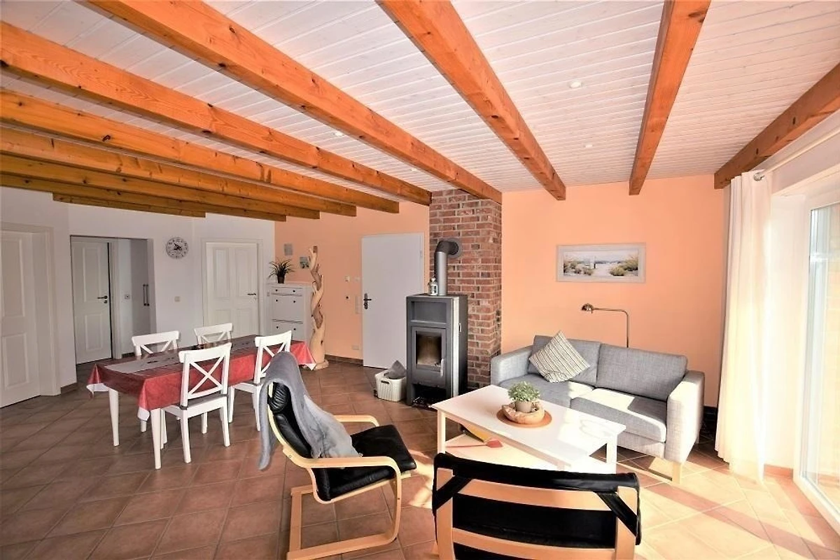 Die Innenausstattung umfasst einen Flachbildfernseher, SAT-TV, eine Stereoanlage, sowie eine moderne Küchenzeile mit Cerankochfeld, Umluftbackofen und Kühlschrank mit Gefrierfach. Für zusätzlichen Komfort sorgt ein Specksteinofen, der in den kühleren Monaten für angenehme Wärme sorgt. Gesellschaftliche Einrichtungen wie eine Waschmaschine und Abstellmöglichkeiten für Fahrräder sind ebenfalls vorhanden. WLAN, ein kostenloses Reisebett und Hochstuhl stehen ebenfalls bereit. Haustiere sind willkommen. Die Mindestbelegung beträgt vier Übernachtungen.