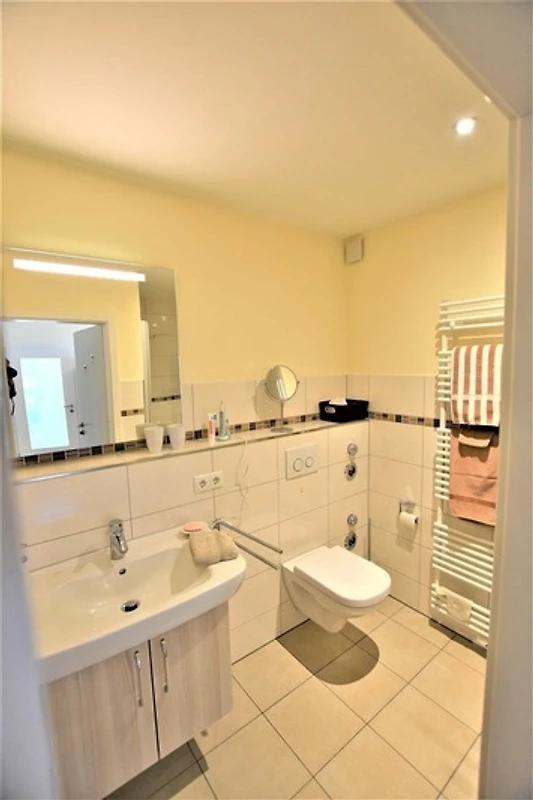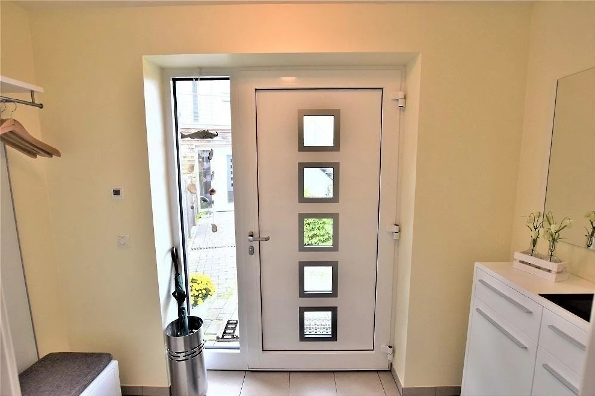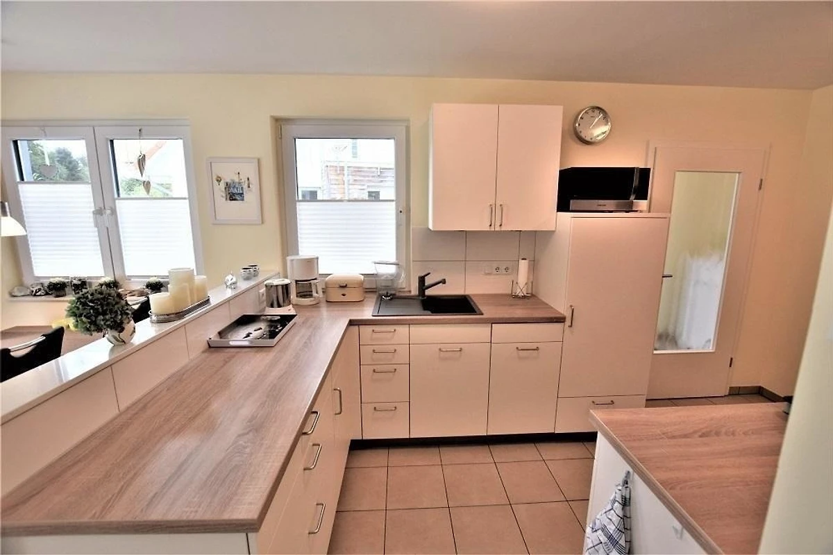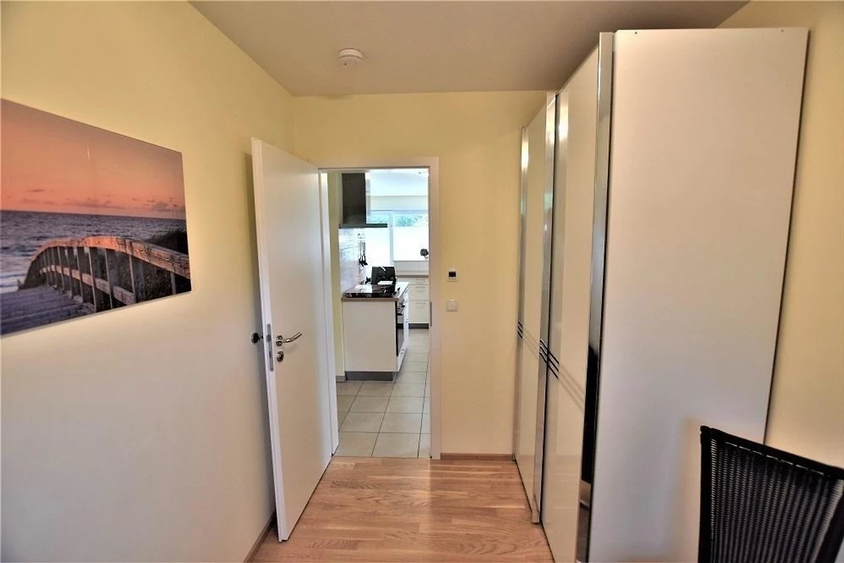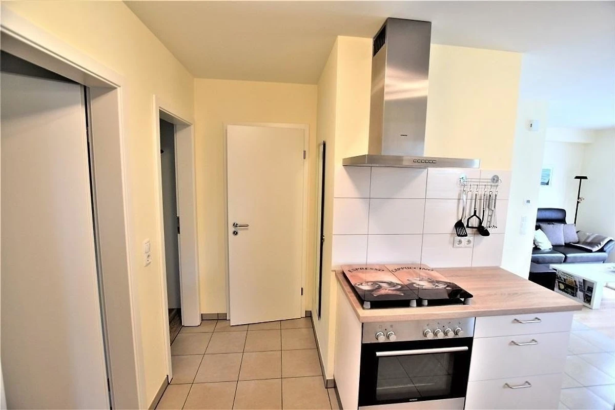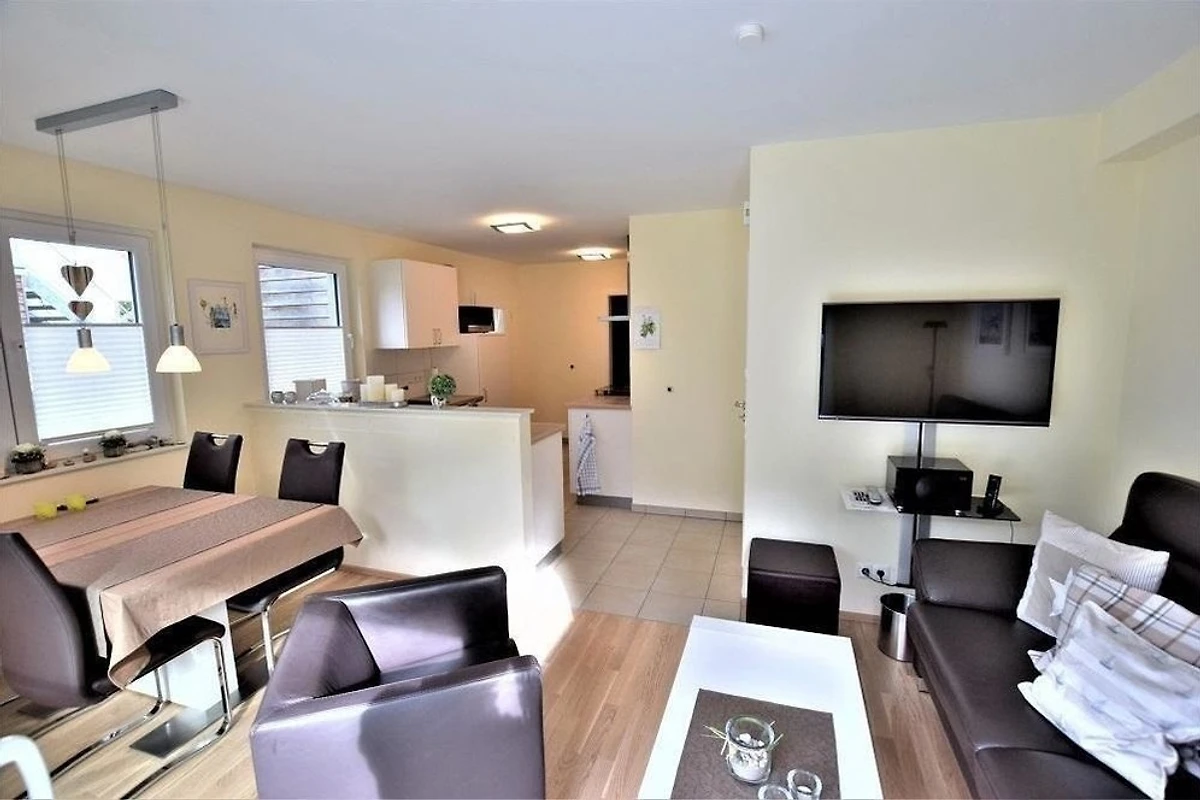 Die Ferienwohnung "Baltic Sea" besticht durch eine helle und moderne Innenausstattung. Im Eingangsbereich sorgt der Windfang mit Schuhschrank, Spiegel und Sitzbank für eine angenehme Ankunft. Der offene Wohnraum, ausgestattet mit einer Ledercouch, einem grossen Flachbildfernseher und einer Soundanlage mit Bluetooth-Schnittstelle, bietet viel Raum zur Entspannung. Die hochwertige, offen gestaltete Küche verfügt über alle notwendigen Geräte, darunter einen Kühlschrank mit Gefrierfach, Herd mit Ceran-Kochfeld und Geschirrspüler. Zwei Schlafzimmer bieten Platz für bis zu vier Personen: eines mit einem komfortablen Bettsofa und das andere mit einem grossen Boxspringbett. Das moderne Duschbad ist mit einem Handtuchwärmer und einer bodentiefen Dusche ausgestattet. Ein Hauswirtschaftsraum mit Waschmaschine und Ladestation für fünf USB-Geräte rundet das Angebot ab. Kostenloses WLAN und ein Festnetzanschluss sind ebenfalls vorhanden.