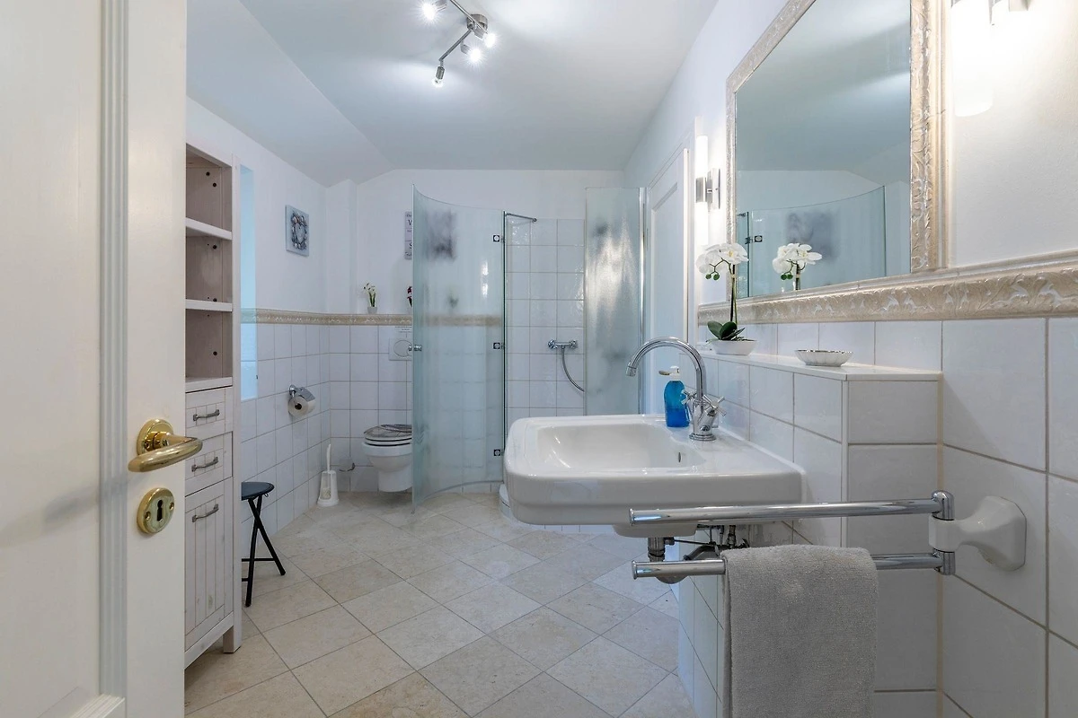 Die bezaubernde Villa Magnolia in der Hohwachter Bucht bietet auf ca. 230 m² Platz für bis zu 10 Personen. Im Erdgeschoss befinden sich ein grosszügiger Wohn- und Essbereich mit offener Küche, zwei Schlafzimmer (ein Doppelbett 200x200 cm, ein Einzelbett 90x200 cm) sowie ein grosses Badezimmer mit Dusche, Badewanne und Gäste-WC. Im Obergeschoss gibt es vier Schlafräume, darunter zwei mit Doppelbetten (180x200 cm) und zwei Einzelbetten (120x200 cm und 90x200 cm), sowie zwei separate Wohnbereiche mit offenen Küchen und TVs. Zusätzlich stehen zwei Badezimmer zur Verfügung. Im Keller befinden sich eine Waschmaschine und ein Tischkicker. Haustiere sind willkommen. WLAN ist im gesamten Haus verfügbar. Zwei Stellplätze und eine Garage zum Abstellen von Fahrrädern sind ebenfalls vorhanden. Dieses Nichtraucherobjekt ist ideal für Familien und grössere Gruppen.