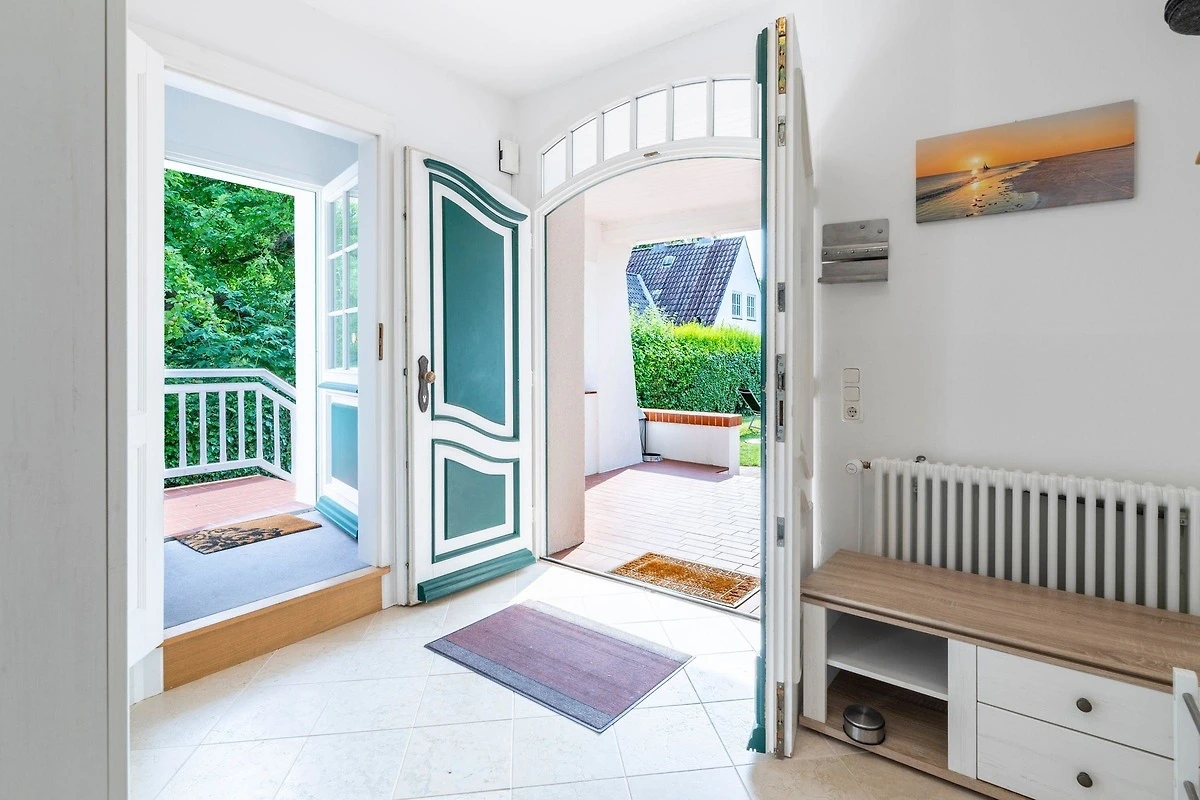 Die bezaubernde Villa Magnolia, nur 200 Meter vom Sandstrand entfernt, bietet einen grosszügigen Aussenbereich mit einem wunderschönen, umfriedeten Garten, der mit Terrassenmöbeln ausgestattet ist. Der Garten lädt zum Entspannen und Verweilen ein und ist der ideale Ort für gesellige Stunden im Freien. Gäste können zudem die Gemeinschaftsanlagen nutzen, um den Aufenthalt in voller Ruhe und Abgeschiedenheit zu geniessen. Vor dem Objekt stehen zwei garantierte Stellplätze zur Verfügung, während die Garage als Abstellplatz für Fahrräder und Bollerwagen genutzt werden kann. Für E-Fahrzeug-Besitzer bietet der Eigentümer eine kostenfreie Ladestation in der Nähe. Die Villa ist ein Nichtraucherobjekt, das auch Haustiere willkommen heisst, und sorgt für ein angenehmes und entspanntes Umfeld für Familien und Gruppen.