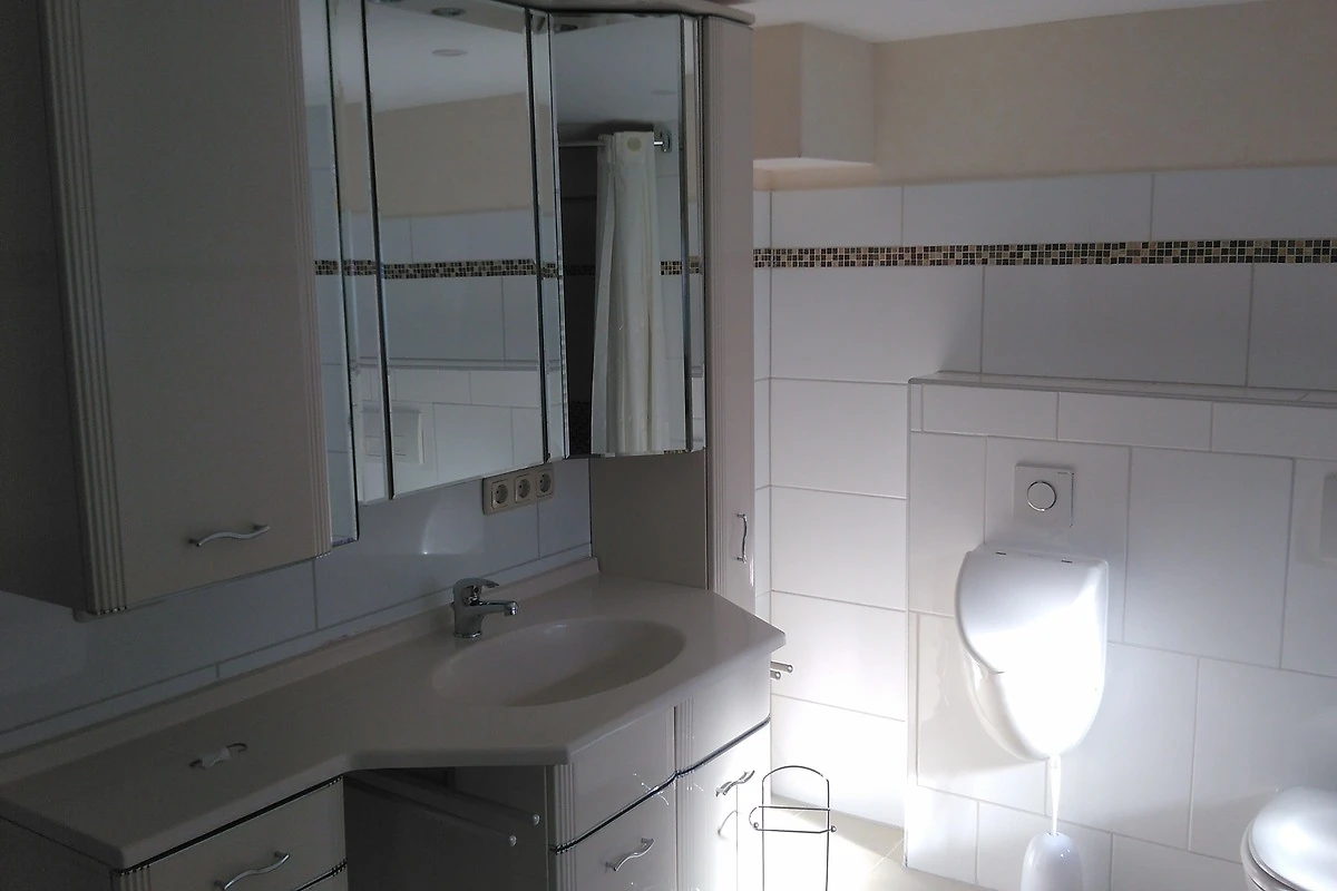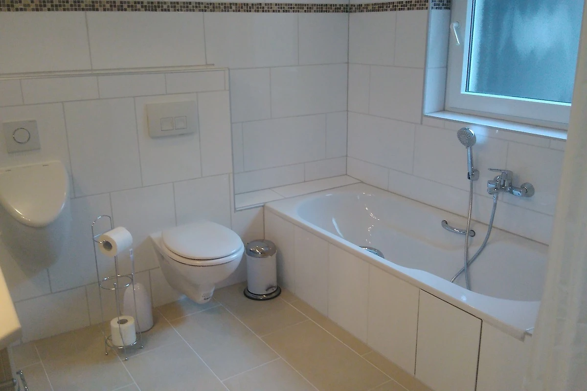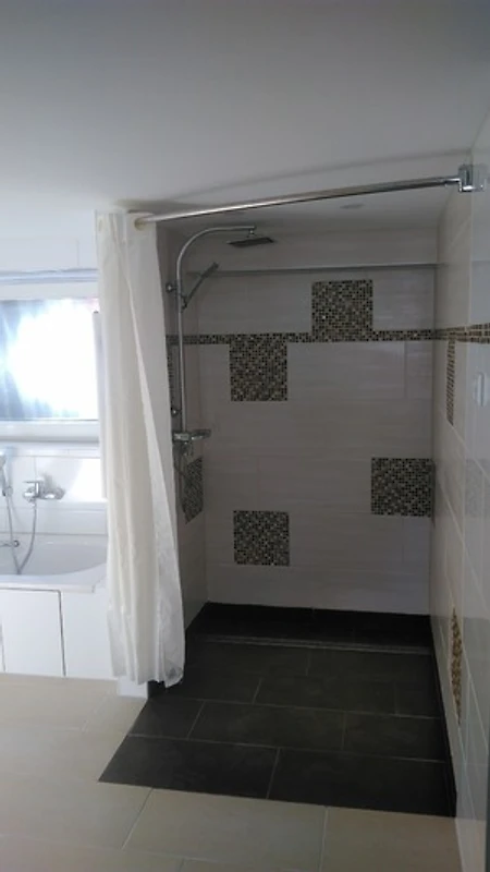 Bad mit bodentiefer, breiter Dusche und Badewanne
