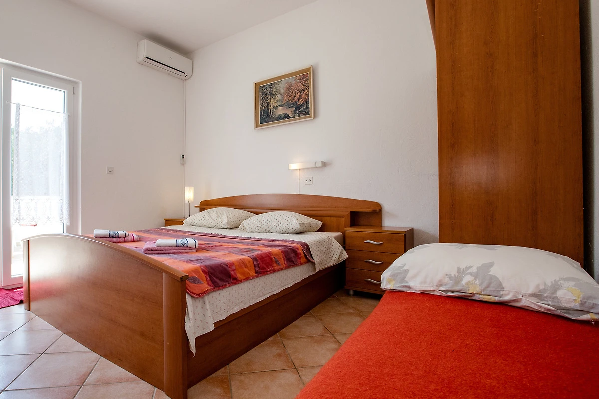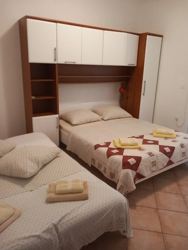 Das Schlafzimmer 3: Doppelbett, eine Schlafcouch für 1-2 Personen,Klimaanlage, WC/Dusche und Terrasse.