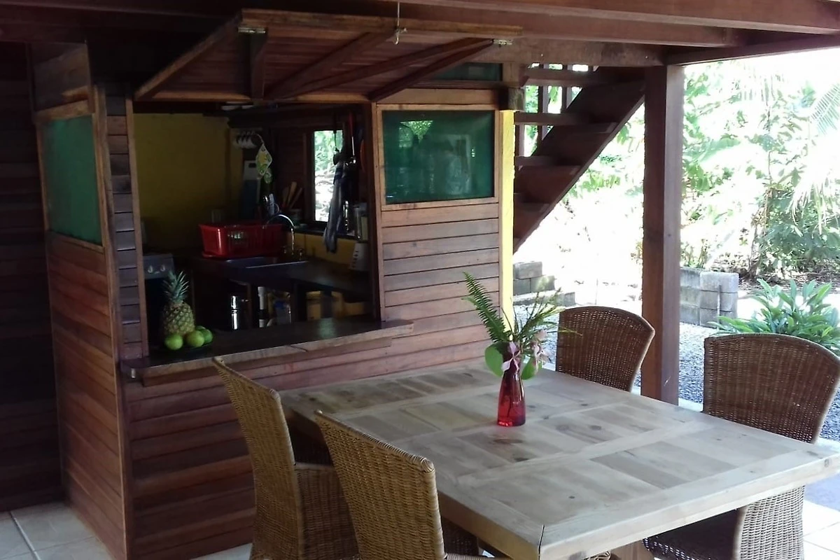Auf der Terasse unten vor der Küche könnt ihr euer Essen am Tage im Schatten geniessen.