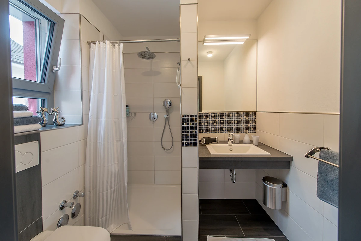 Komfort-Bad mit Dusche, Waschbecken und WC & Komfort-Ausstattung