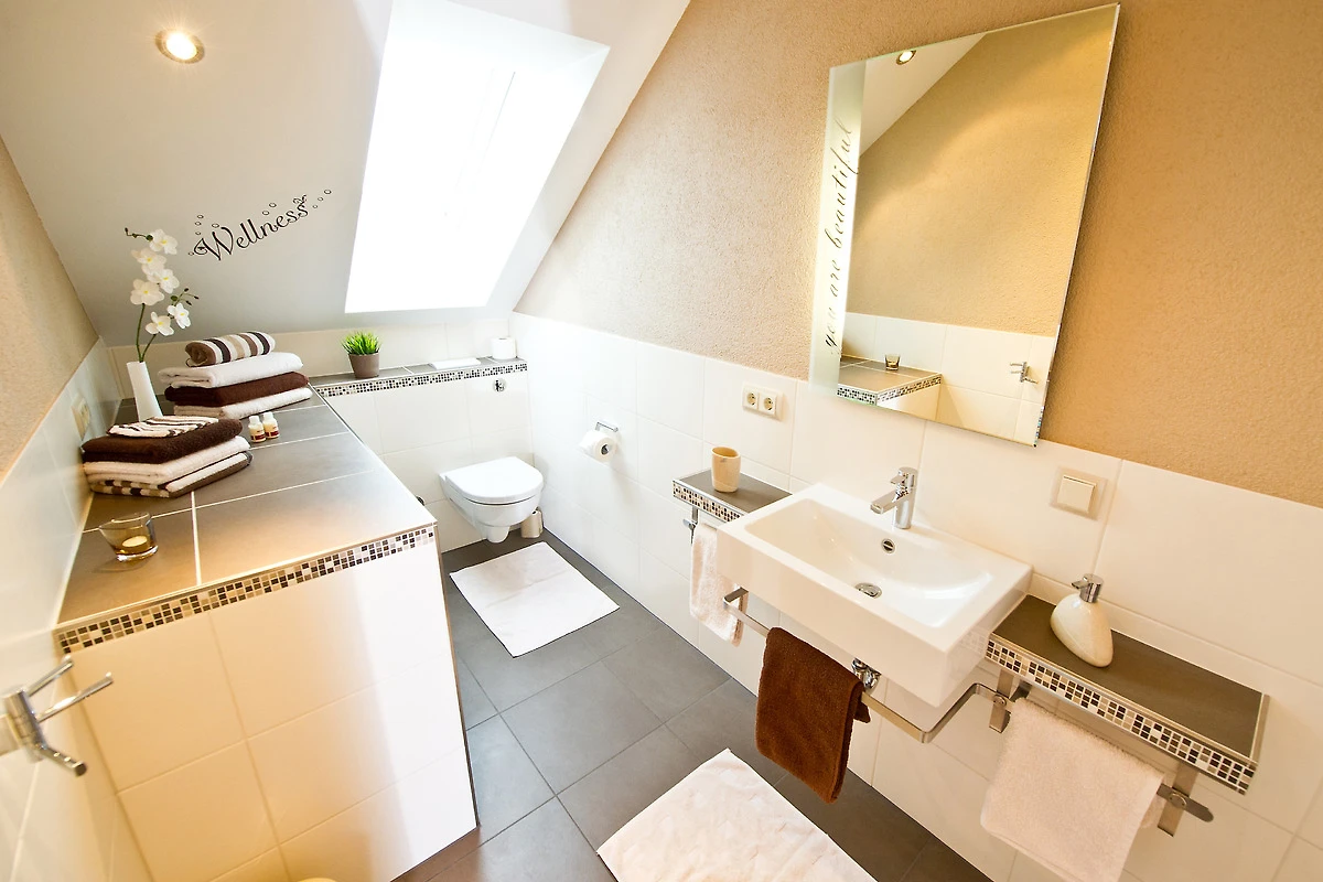 1 x Komfort-Bad mit Badewanne, Waschbecken und WC & Komfort-Ausstattung