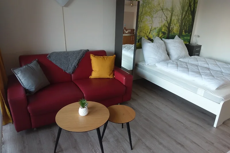 Dieses Appartement verfügt über ein Wohn-/Schlafzimmer mit Doppelbett sowie einer schönen Schlafcouch (Liegefläche 1,20x1,90m).