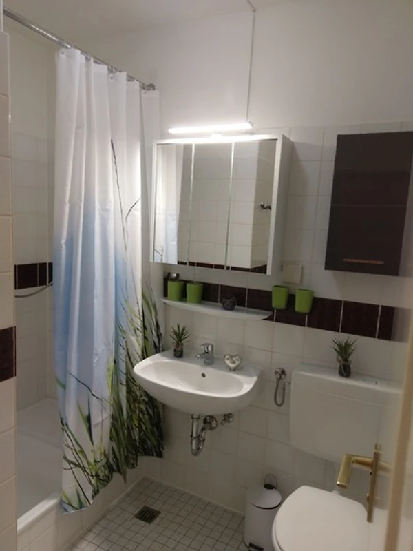 Das Bad ist mit Dusche/WC, Waschtisch und Fön ausgestattet.