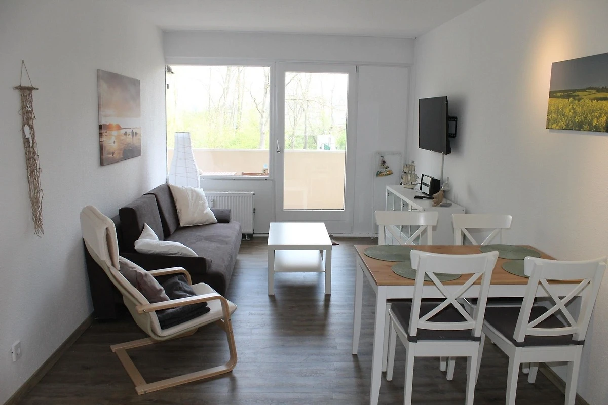 Die Ferienwohnung befindet sich im ersten Obergeschoss des Hauses "Flensburg". Auf dem Gelände des Ferienhauses stehen nicht nur Parkplätze zur Verfügung, es verfügt auch über ein Waschcenter und über einen Kinderspielplatz, der besonders bei kleinen Gästen beliebt ist.