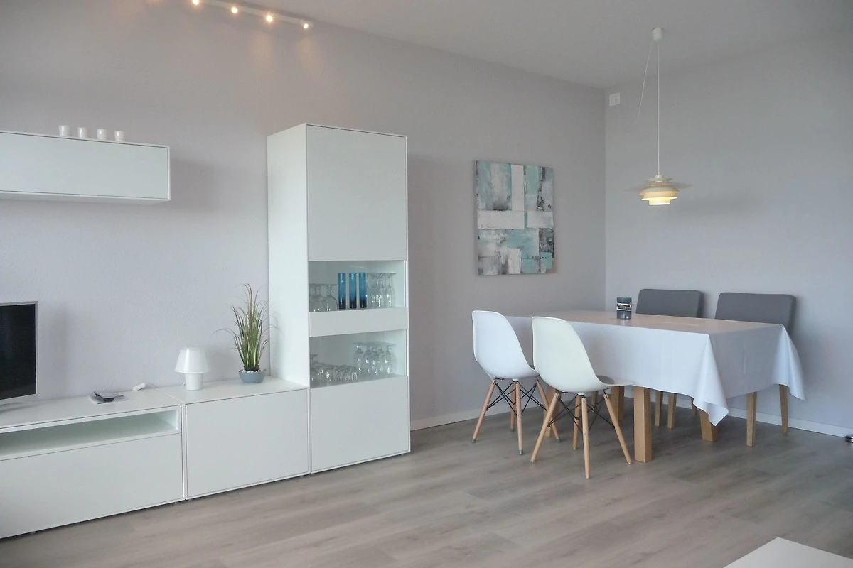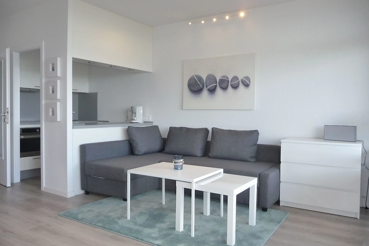 Willkommen in Ihrem stilvollen Feriendomizil! Der sonnendurchflutete Wohnbereich mit seiner grossen Fensterfront bietet Ihnen nicht nur viel Licht, sondern auch einen traumhaften Ausblick auf die Ostsee – perfekt für entspannte Stunden zu jeder Tageszeit.