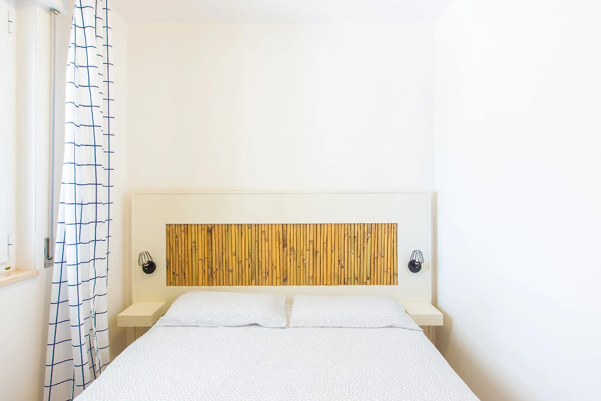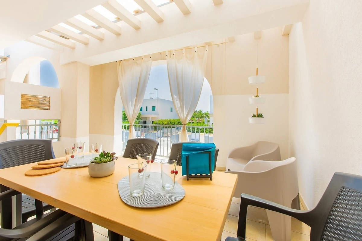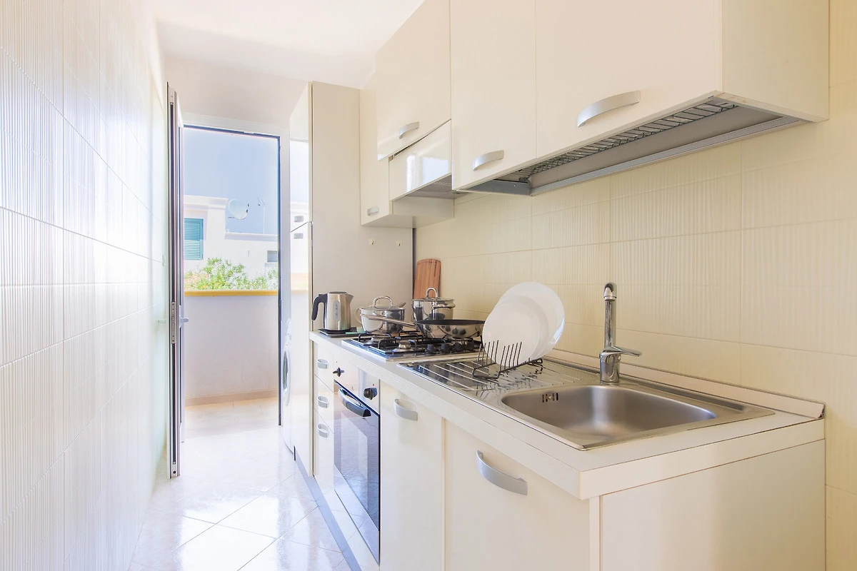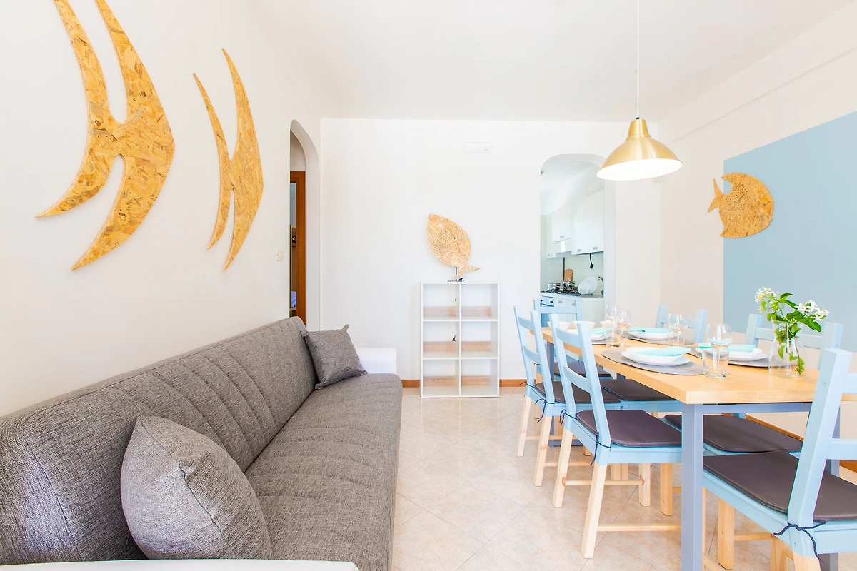 Die Unterkunft ist Teil eines Komplexes von vier Apartments mit insgesamt 24 Betten. Der Strand kann zu Fuss erreicht werden und ist komplett sandig, wobei sich freie Strandecken mit einem ausgestatteten Strand abwechseln. Das Meer ist klar und der Meeresboden ist niedrig. Jedes Apartment verfügt über eine Veranda zur privaten Nutzung. Das Cristallo Apartment befindet sich im ersten Stock und bietet eine Panorama-Veranda, einen Balkon und Zugang zur Terrasse mit Meerblick. Es ist zum gemütlichen Essen im Freien eingerichtet und bietet Lesestühle. Klimaanlage auf dem Flur in der Nähe des Schlafbereichs.