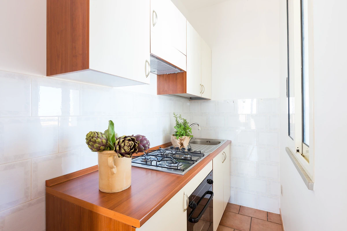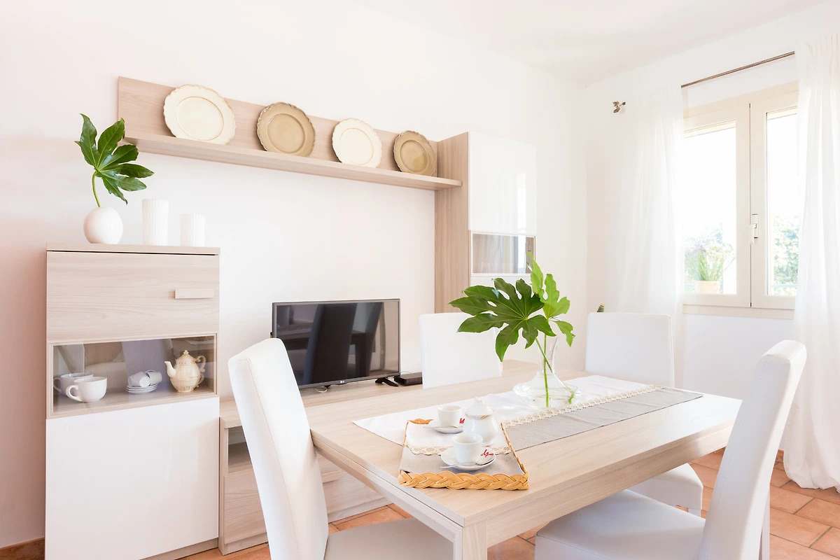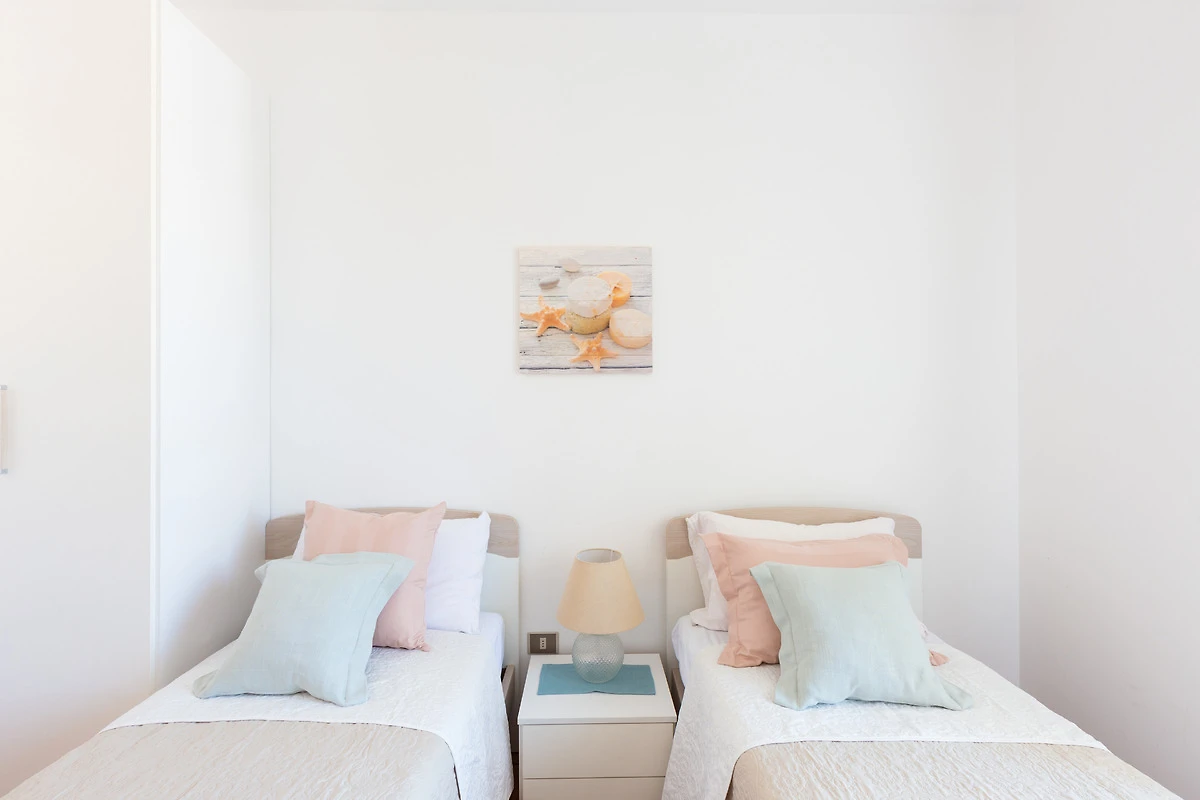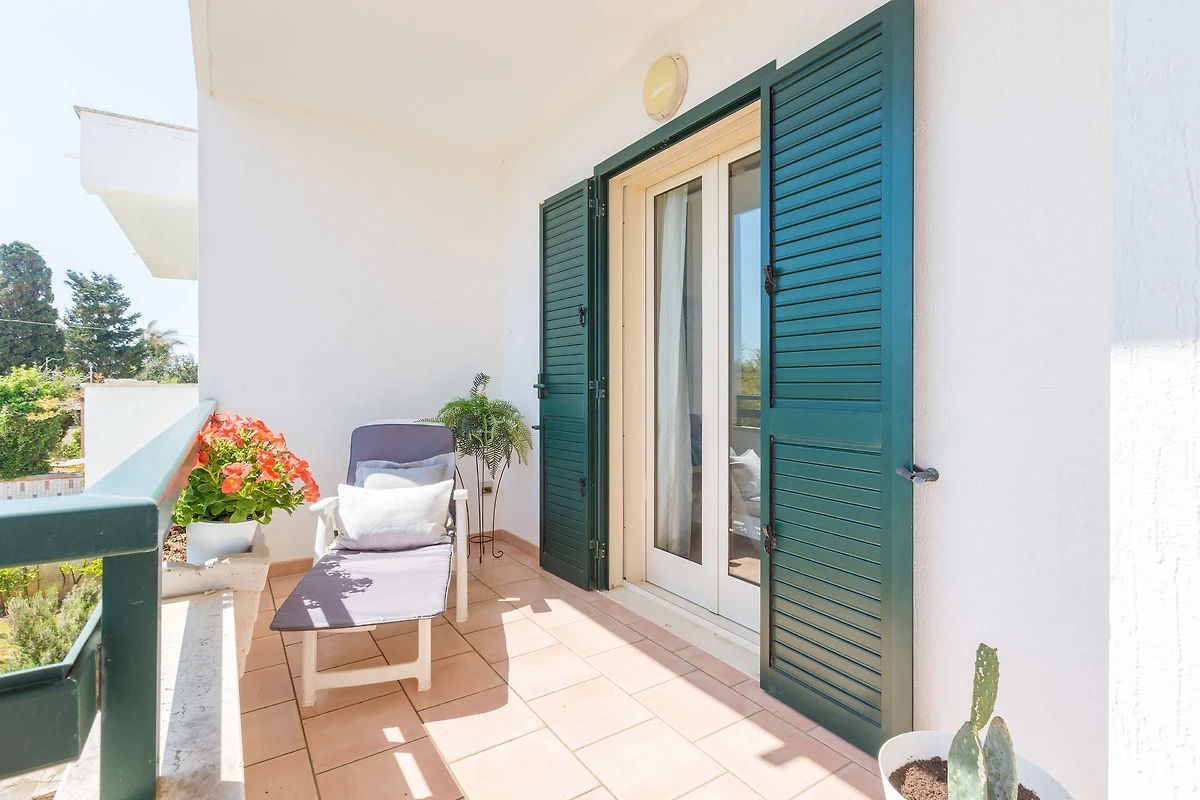 Die Wohnung verfügt über drei Aussenbereiche, von denen zwei Veranden auf zwei Seiten des Grundstücks angeordnet sind, um zu jeder Tageszeit Kühle zu gewährleisten. Auf dem Dach befindet sich eine Terrasse mit Meerblick. Im Erdgeschoss ist der Parkplatz bewacht.