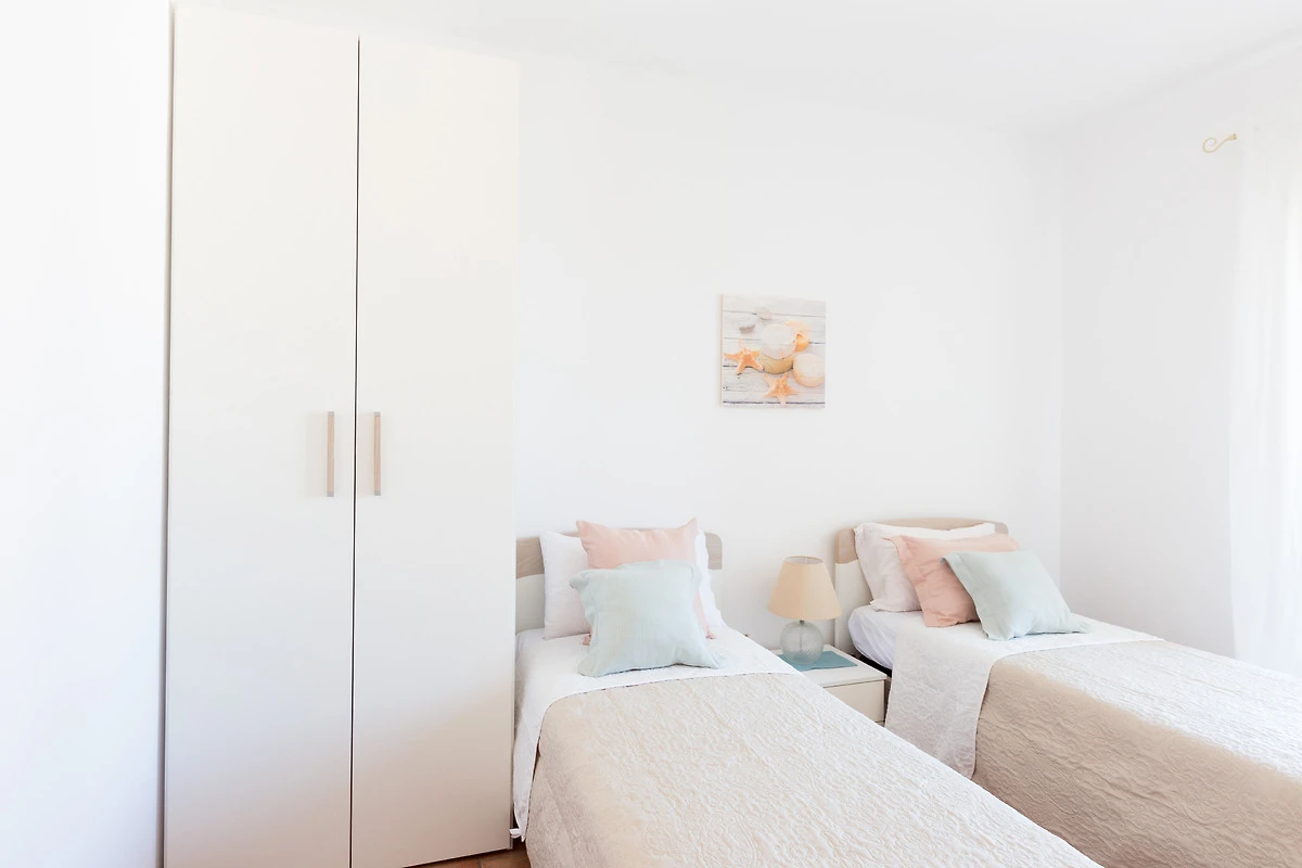 Haus im ersten Stock, 2 Schlafzimmer, 1 Doppelzimmer, eine Küchenzeile, ein Wohnzimmer mit einem Schlafsofa, ein Badezimmer mit Dusche, insgesamt Betten 4 + 1. Parkplatz im Erdgeschoss auf dem Grundstück.