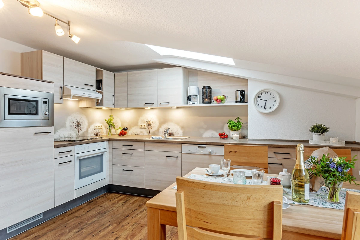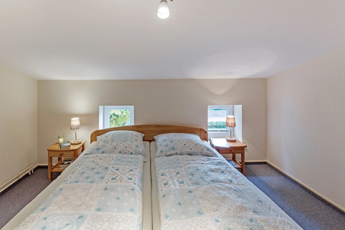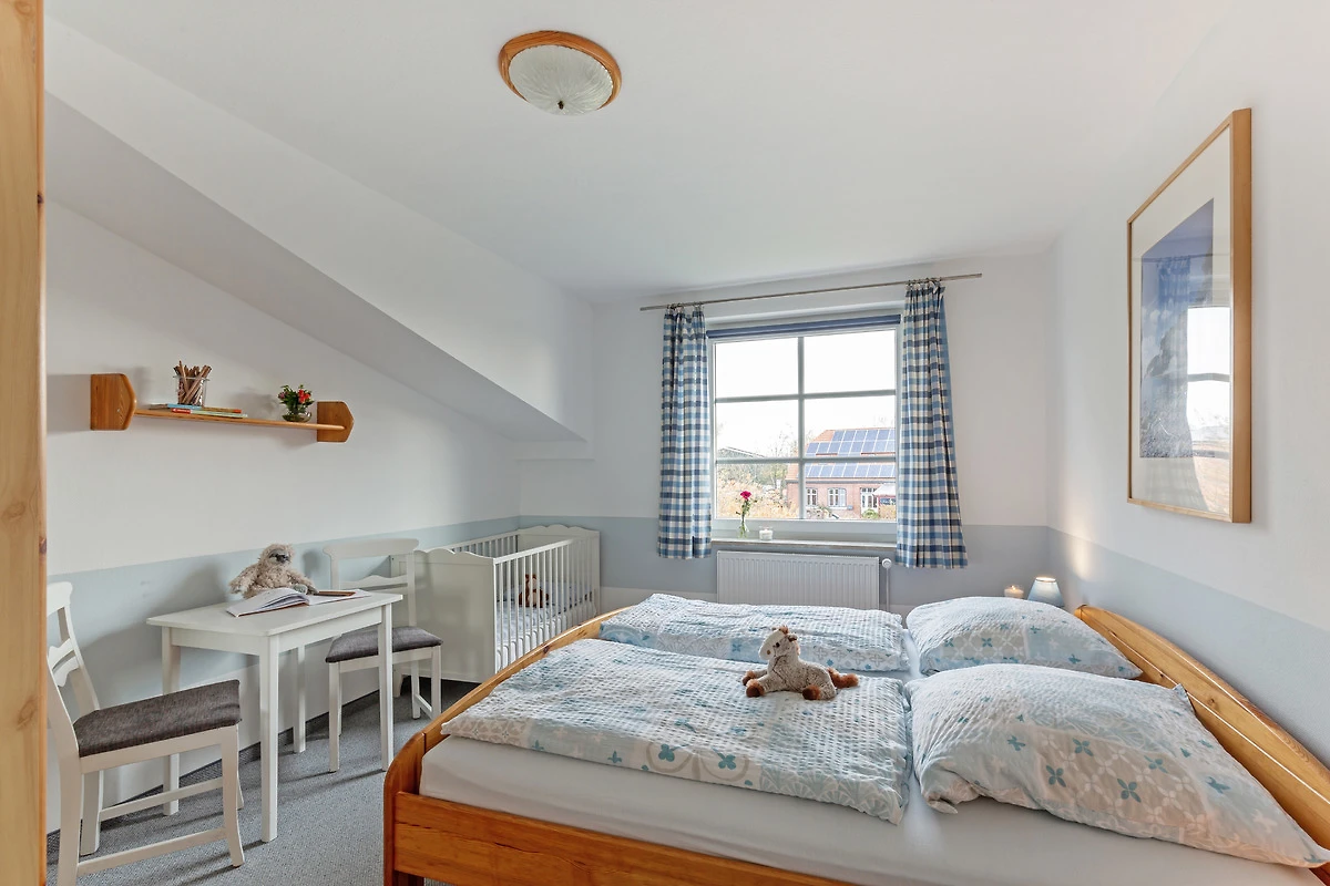 Die Wohnung Mohnblume liegt im ersten Stock des ehemaligen Bauernhauses auf dem Ferienhof Marquardt. Die Wohnung verfügt über ein Elternschlafzimmer mit Doppelbett und ein Kinderschlafzimmer mit Doppelbett. Im Elternschlafzimmer steht ein Babybettchen, im Kinderschlafzimmer ist eine Aufbettung mit einem Bett in Normalgrösse möglich. Weiterhin gibt es ein Duschbad und ein Wohnzimmer mit Küchenzeile, Essbereich und einem grossen Balkon zum Garten. Im Garten stehen Sitzmöbel und Grills zur Verfügung.