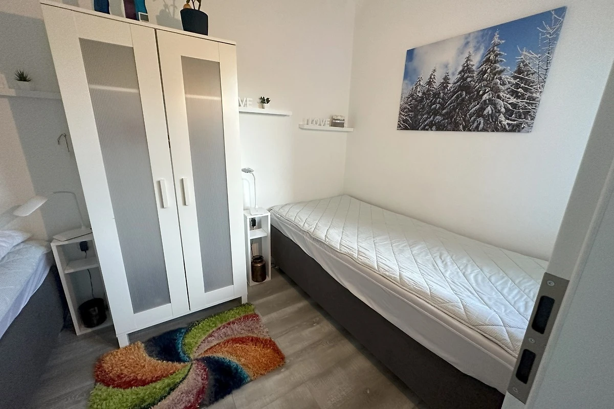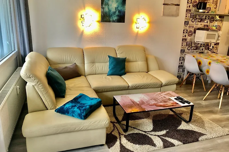 Mit kostenlosem schnellen WLAN (eigener Vertrag, kein Hotspot), Smart TV für Streamingdienste und mit GIGA TV Box für brillantes Fernsehen mit vielen Sendern, auch in englischer Sprache und vielen DVD`s für das Abendprogramm.