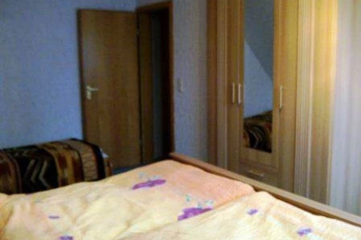 Das Schlafzimmer ist ausgestattet mit einem Doppelbett und einem Einzelbett, Bettwäsche und Handtücher werden von uns gestellt und sind im Mietpreis enthalten. Auf Wunsch stellen wir zusätzlich ein Kinderbett auf und stellen Ihnen einen Kinderhochstuhl ohne Mehrkosten zur Verfügung. Sie erhalten Zugang zu unserem wlan.