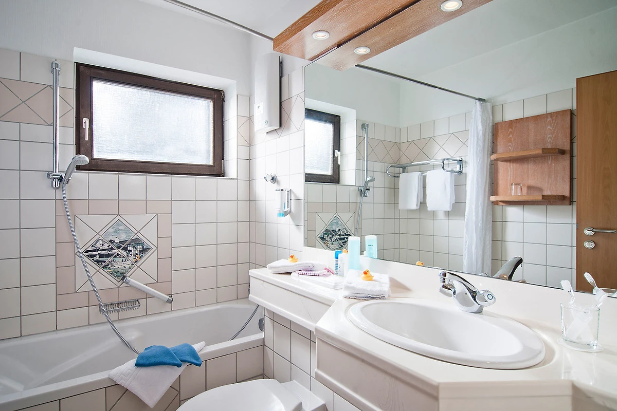 Das Ferienhaus "Kastanie" ist 75 m² gross und verfügt über zwei Schlafzimmer mit insgesamt vier Betten (1x mit Doppelbett, 1x mit zwei Einzelbetten oder auf Anfrage mit Etagenbett), einen Wohnraum mit HD-Flachbildschrim TV, einer Schlafcouch und einem Essbereich. Die Küche ist separat zugänglich und mit Mikrowelle, Kaffee- und Spülmaschine sowie diversen Kochutensilien gut ausgestattet, um sich auch unabhängig von der Hotelgastronomie selbst versorgen zu können.