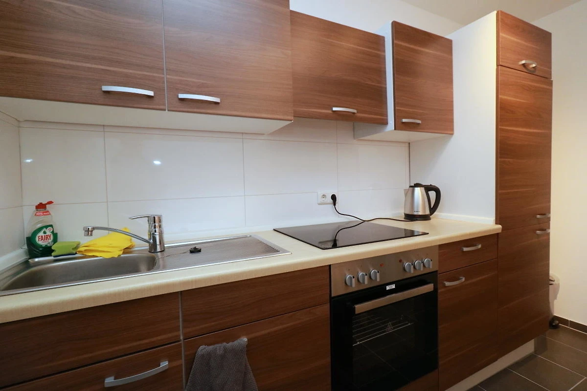 Die Küche verfügt über keine Spülmaschine. Kühlschrank (mit 3-Sterne-Gefrierfach), Backofen, Ceranfeld, Dunstabzug mit Kochfeldbeleuchtung und Spüle sowie Topfset/Pfanne, Geschirr, Besteck, Tassen und Gläser für 4 Personen sind vorhanden. Bei Buchung für 5 Personen stellen wir Ihnen weiteres Geschirr zur Verfügung.