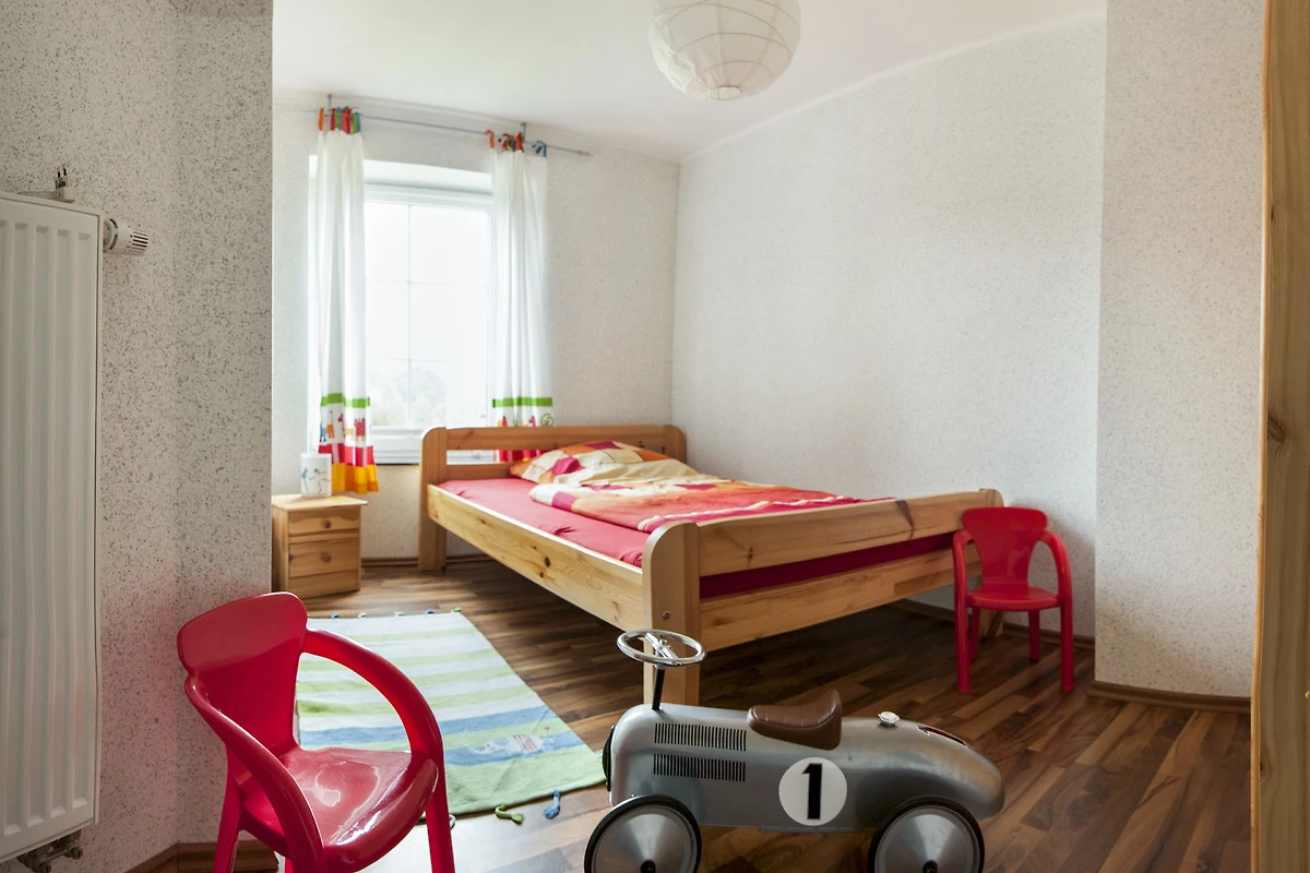 Eine Kleinkindausstattung wie Hochstuhl und Kinderbett sind auf Anfrage verfügbar.