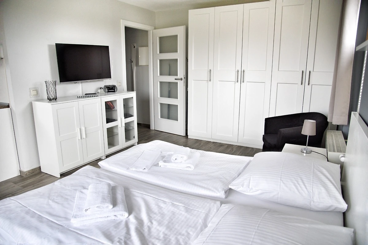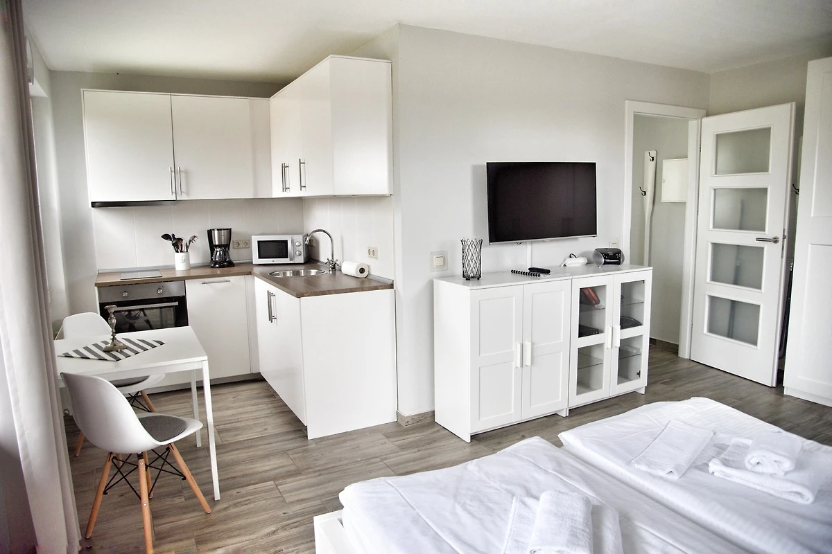 Im offenen Wohn- und Essbereich steht Ihnen ein Esstisch mit zwei Stühlen zur Verfügung. Die Küchenzeile ist sehr gut ausgestattet. Bestandteile sind unter anderem ein Cerankochfeld und ein Backofen, eine Kaffeemaschine, ein Kühlschrank, eine Mikrowelle und ein Geschirrspüler findet hier Platz. Multimedial stehen Ihnen hier ein Flachbildfernseher mit Kabelanschluss zur Verfügung. Beidseitig Ihres Bettes finden Sie ein Nachttisch mit einer Leselampe vor. Ebenfalls steht Ihnen hier ein grosser Kleiderschrank und ein separater Sessel zur Verfügung. Das Badezimmer hat eine Dusche mit Duschkabine und auch hier finden Sie Ablageflächen für all Ihre Mitbringsel. Liebevolle Details laden zum Wohlfühlen ein. Der Flur beherbergt eine Flurgarderobe und einen Spiegel. Das Appartement Dalben liegt im Erdgeschoss des Hauses Seestern, im Eingang 1. In unmittelbarer Nähe dieses Appartements befinden sich auch weitere Ferienappartements unserer Gesellschaft. Eine gemeinsame Anmietung ist hier sehr gut möglich.