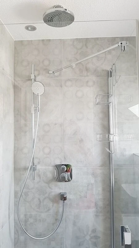 mit ebenerdiger Regendusche und Föhn.
