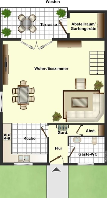• Abstellraum mit Gartenmöbeln, Grill und im Winter Schlitten.