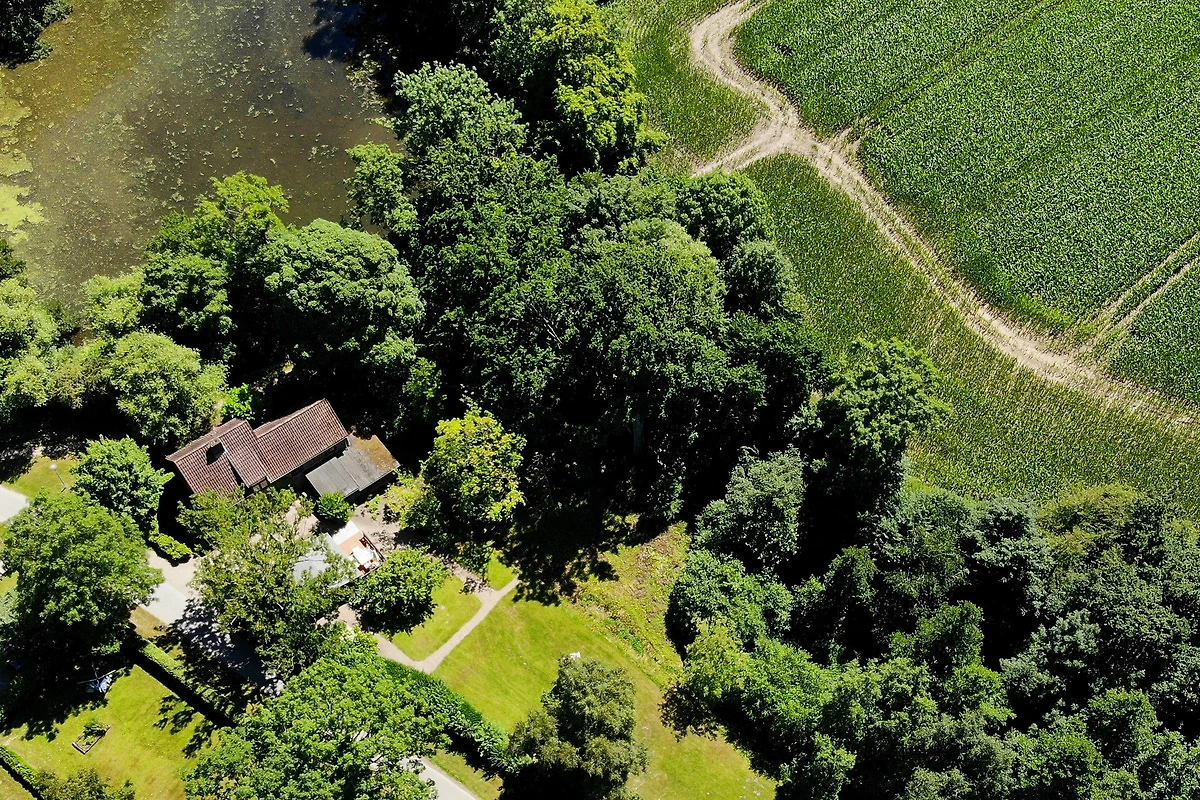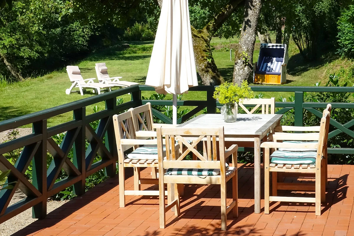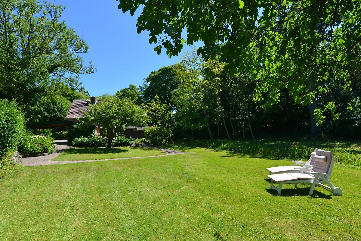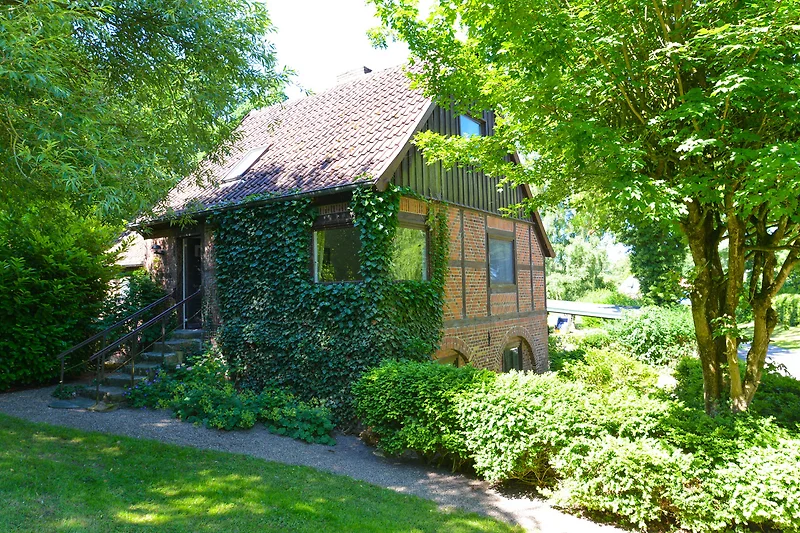 Der grosse verwunschener Garten der Wassermühle zieht sich, von einer Hecke getrennt, entlang der idyllisch ländlichen Sackgasse am Schlossgraben, in der insgesamt nur vier Häuser liegen. Hier ist man noch fussläufig zum Dorf Gelting mit seinem Spielplatz und Einkaufsmöglichkeiten, aber mit dem Fahrrad und Auto sind auch das Naturschutzgebiet und die nahe gelegenen Strände der Geltinger Bucht in Falshöft, Wackerballig und Pottloch schnell zu erreichen.