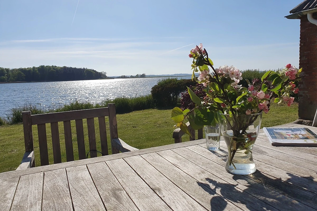 Terrasse mit Meerblick und grosser Garten am Wasser
