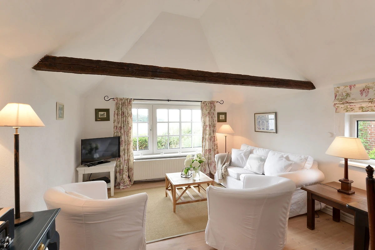 Alleinstehend mit grossem Garten am Geltinger Noor liegt die Müllerkate direkt am Eingang zum Naturschutzgebiet Geltinger Birk. Von der 1806 erbauten kleinen Kate aus, war es dem Müller möglich die Windmühle Charlotte zu beobachten. Das kleine Fenster in einem der beiden Schlafzimmer ist ein historisches Überbleibsel aus dieser Zeit. Zu beiden Seiten bietet das Haus Wasserblick. Aus den Schlafzimmern eröffnet sich der Blick auf die vernässten Flächen der Geltinger Birk. Bis zu 200 Vogelarten können hier über das Jahr beobachtet werden. Vom Wohnzimmer und Küche sowie der Terrasse und dem grossen Garten blickt man auf das Geltinger Noor und nach rechts auf die offene Ostsee. Diese kleine Kate ist Rückzugsort für Naturliebhaber und Ruhesuchende. Hier geniesst man im Winter das prasselnde Feuer im Ofen und blickt über das vereiste Noor. Im Sommer lässt einen der Garten und Blick auf das Wasser den Alltag vergessen.