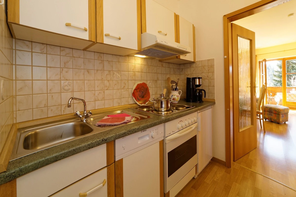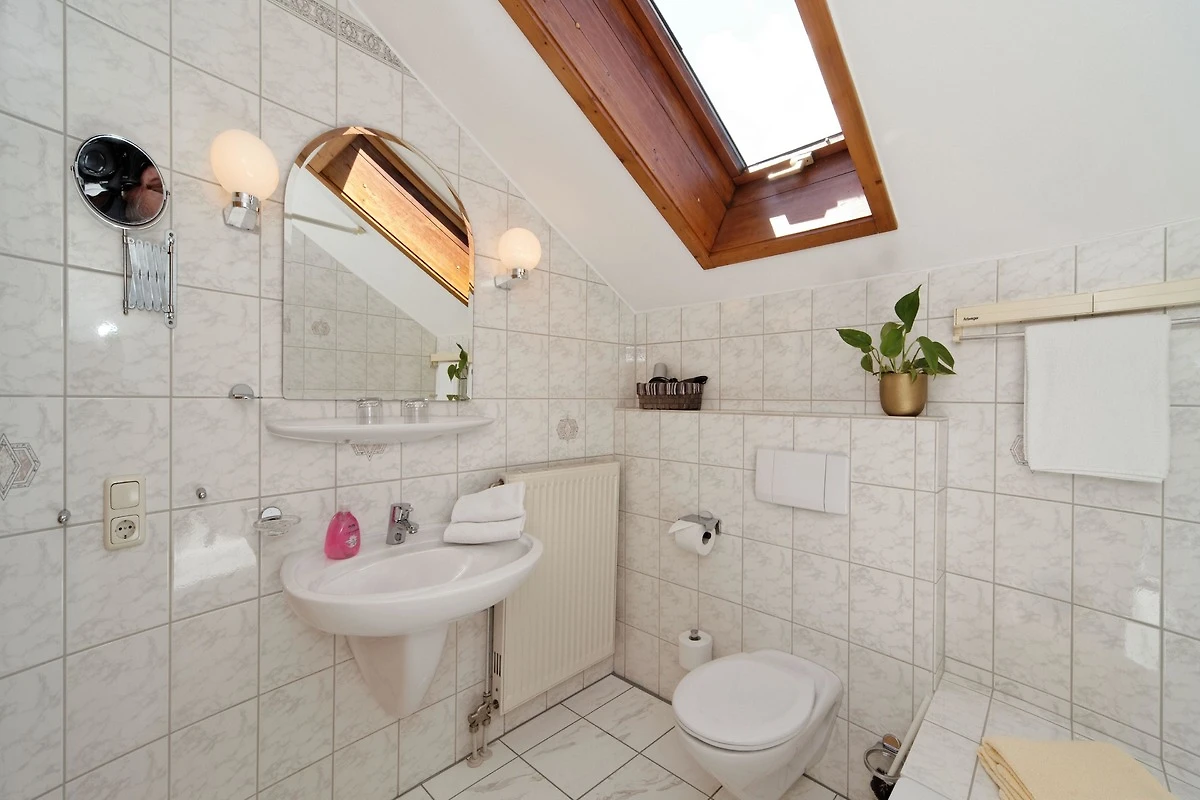 Dieses nette Apartment ist im obersten Stockwerk mit wunderschöner Morgensonne. Sitzen Sie auf dem Balkon und hören Sie die Vögel zwitschern. Die Essecke bietet Platz für 4 Personen. In der Küche befinden sich ein Kühlschrank mit Gefrierfach, Einbauherd mit Backofen, Dunstabzugshaube, Geschirrspüler und Spülbecken. Das Bad hat ein schönes Dachfenster, Badewanne mit Dusche, Waschbecken und WC.