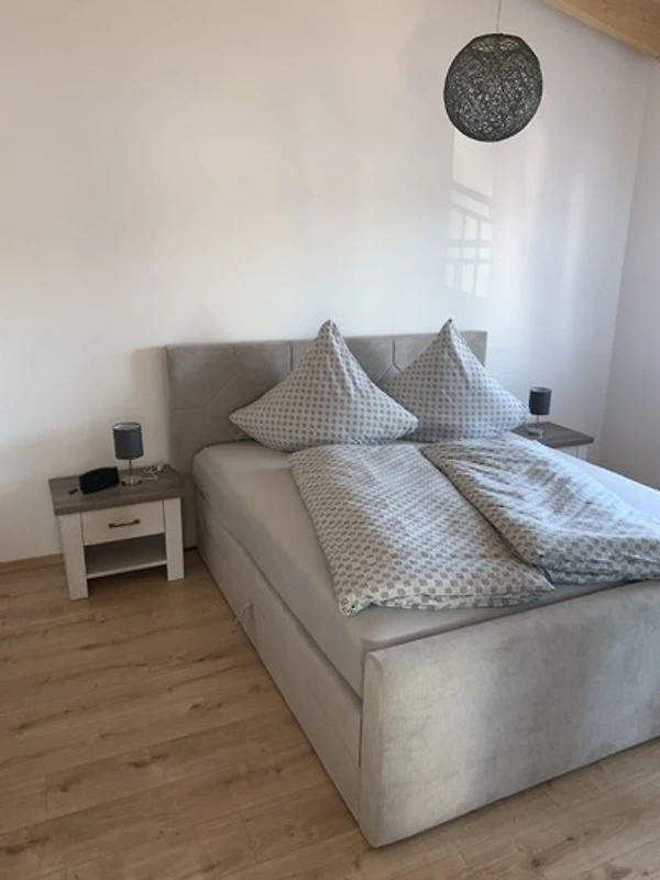 Schlafen: Die Ferienwohnung verfügt über ein Schlafzimmer mit hochwertigem Boxspringbett (180x200), sowie über eine weitere hochwertige Schlafgelegenheit im Wohnzimmer.