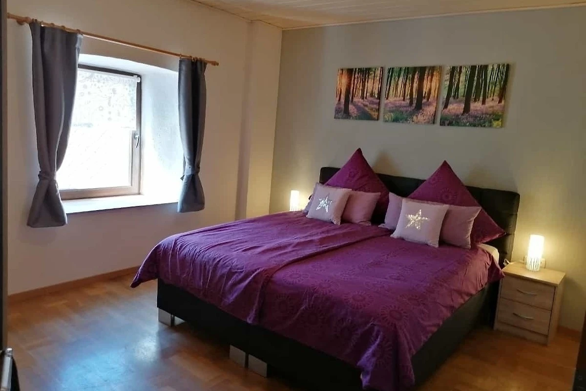 Im schönen Westeifel Ort Schwirzheim liegt unser ehemaliges liebevoll renoviertes Bauernhaus mit grossem Garten. Verbringen Sie hier einen unvergesslichen Urlaub - umgeben von Schneifelwäldern, Vulkanmaaren, der Abteistadt Prüm, den Dolomiten Gerolstein, die Römerstadt Trier, Belgien, Luxemburg, Kronenburger See und weiteren vielfältigen Ausflugszielen. Für Kinder empfehlen wir besonders den Eifelpark Gondorf, Wildpark Daun, Kasselburg Pelm und das Cascade Freizeitbad in Bitburg.Trotz stilvoller und moderner Rund-um-Ausstattung hat das Haus seinen eigenen Charme bewahrt. Hier finden Gross und Klein ihren Platz. Zum Wohlfühlen im Kinderzimmer stehen für unsere kleinen Gäste Babybett und Etagenbett bereit. Hochstuhl und Wickeltisch runden die Ausstattung ab. Für unsere grossen Gäste stehen in liebevoll eingerichteten Schlafzimmern komfortable Boxspringbetten zum Entspannen und Verweilen bereit. Ein gemütlicher Kaminofen sorgt für maximale Entspannung. Hier ist jeder herzlich Willkommen. Ob Familienurlaub, Urlaub mit Freunden oder Berufspendler. Wir freuen uns auf Sie. W-LAN steht kostenlos zu Verfügung. Waschmaschine und Trockner sind gegen eine Gebühr zu nutzten. Es werden pro Wasch oder Trockengang 2.50 Euro berrechnet https://youtu.be/DkGyqCqq2lo