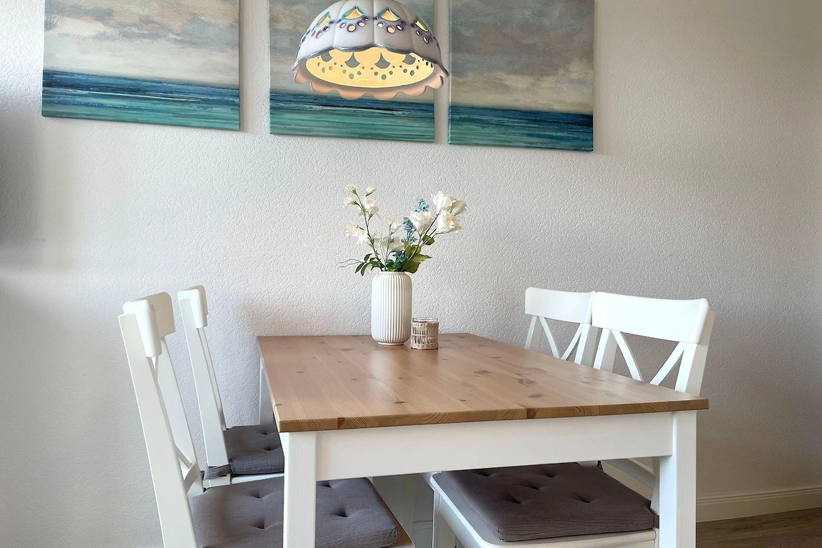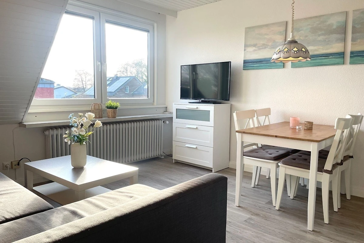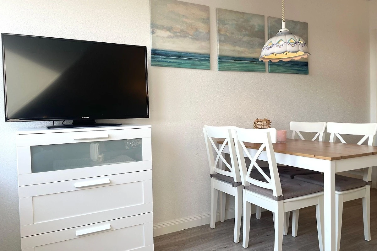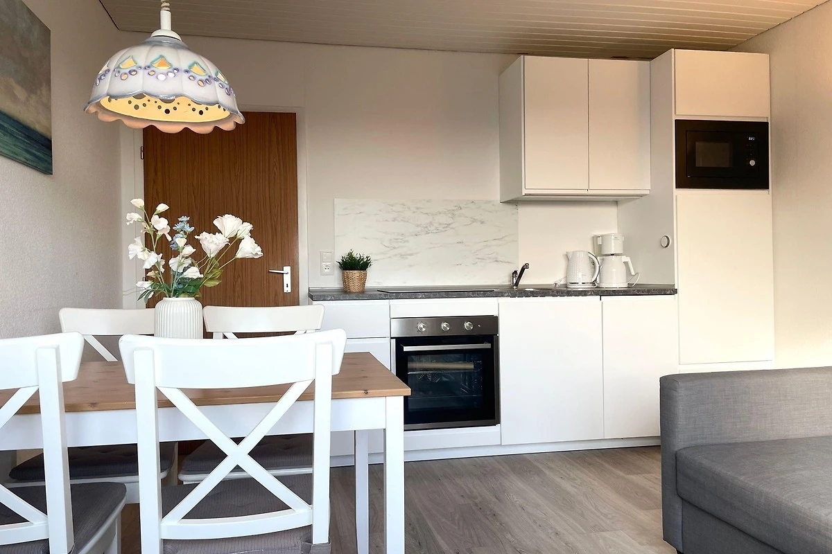 Im Haus Ingeborg erwartet die Gäste eine charmante Ferienwohnung im ersten Stock, die auf 40 m² Platz für bis zu vier Personen bietet. Die Unterkunft verfügt über ein gemütliches Schlafzimmer sowie einen offenen Wohnbereich, der mit einer voll ausgestatteten Küche und einem einladenden Esstisch kombiniert ist. Zur Ausstattung gehören ein 4-Platten-Herd, ein Backofen und eine Spülmaschine, die den Küchenaufenthalt erleichtern. Im Wohnbereich sorgt ein komfortables Sofa mit TV für Entspannung nach einem erlebnisreichen Tag. Für die Gäste steht ein gemeinschaftlich genutzter Garten mit bequemen Gartenmöbeln und einem Grill zur Verfügung. Eine Waschmaschine und ein Wäschetrockner sind gegen Gebühr im Nachbarhaus verfügbar. Nur 500 Meter entfernt liegt der schöne Sandstrand, ideal für einen abwechslungsreichen Urlaub an der Nordsee.