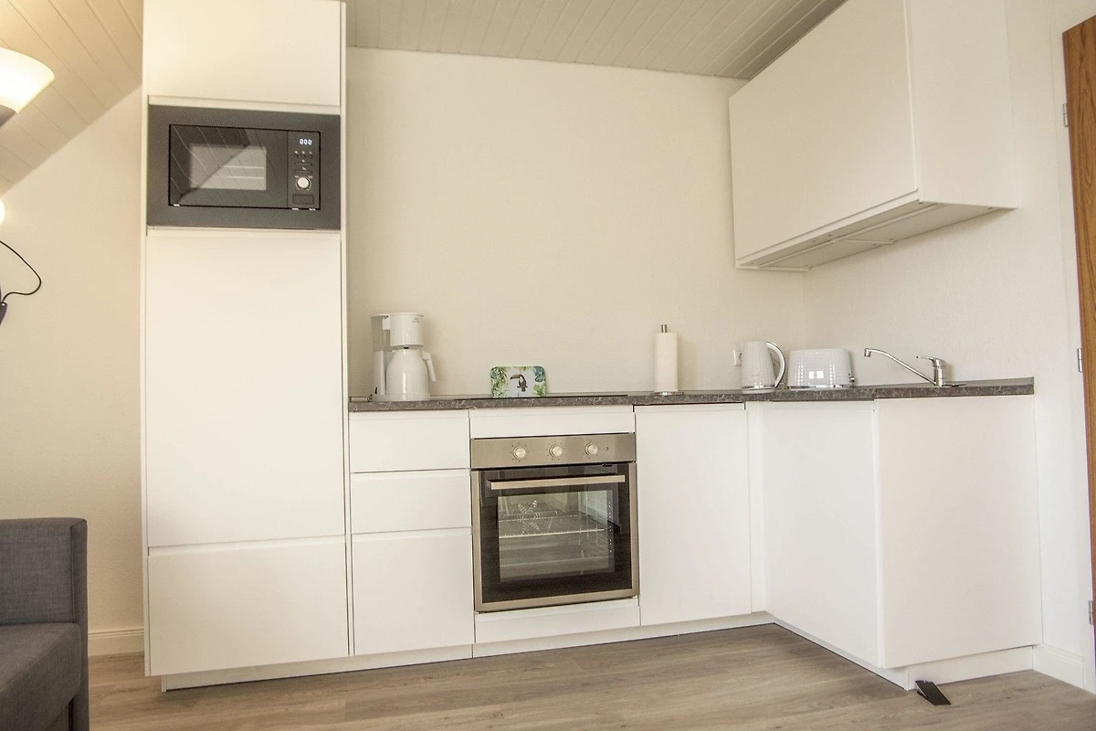 Die voll ausgestattete Küche bietet moderne Geräte wie Backofen, Geschirrspüler und Mikrowelle sowie eine Kaffeemaschine, Toaster und Wasserkocher. Geschirr und Besteck stehen ebenfalls zur Verfügung. Gemeinschaftliche Einrichtungen wie eine Waschmaschine und ein Trockner befinden sich im Nachbarhaus. Diese Wohnung ist ideal für einen erholsamen Aufenthalt an der Nordsee.