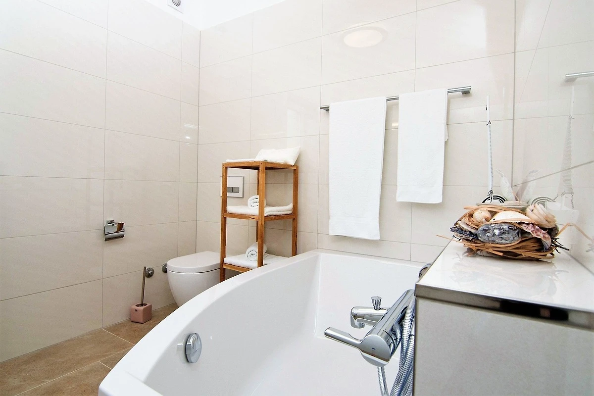 Ihnen stehen zwei Schlafzimmer mit Doppelbett (200 x 200 cm / 180 x 200 cm) und ein drittes Zimmer mit einem französischen Bett (160 x 200 cm) sowie zwei gemütliche Badezimmer (Bad/Wc) und (Dusche/Wc) zur Verfügung.