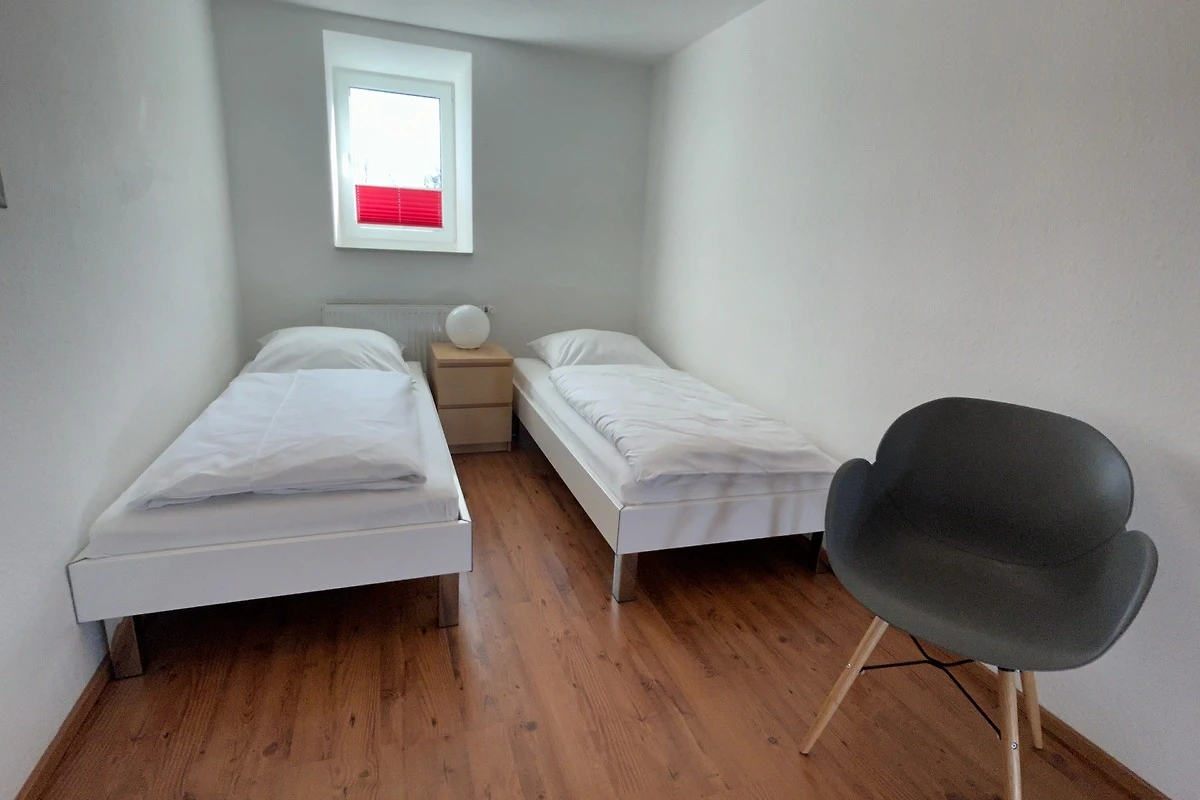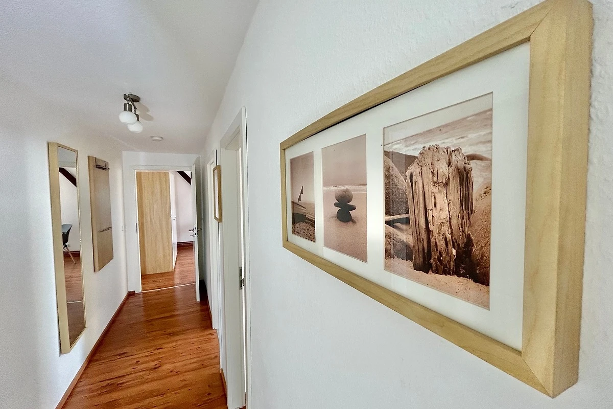 Die Ferienwohnung Nord ist 80 m/2 gross und befindet sich im ersten Stock des Bauernhauses. Sie besteht aus 2 Schlafzimmern mit einem Doppelbett bzw. zwei Einzelbetten.